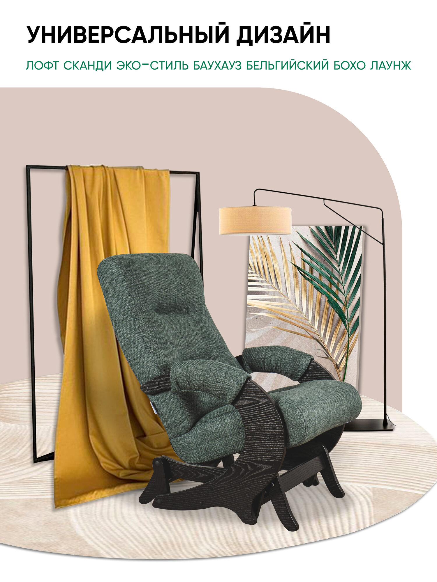 Кресло-качалка, маятниковый механизм для дома и дачи Glider Эталон в ткани рогожка, цвет зеленый интересное: