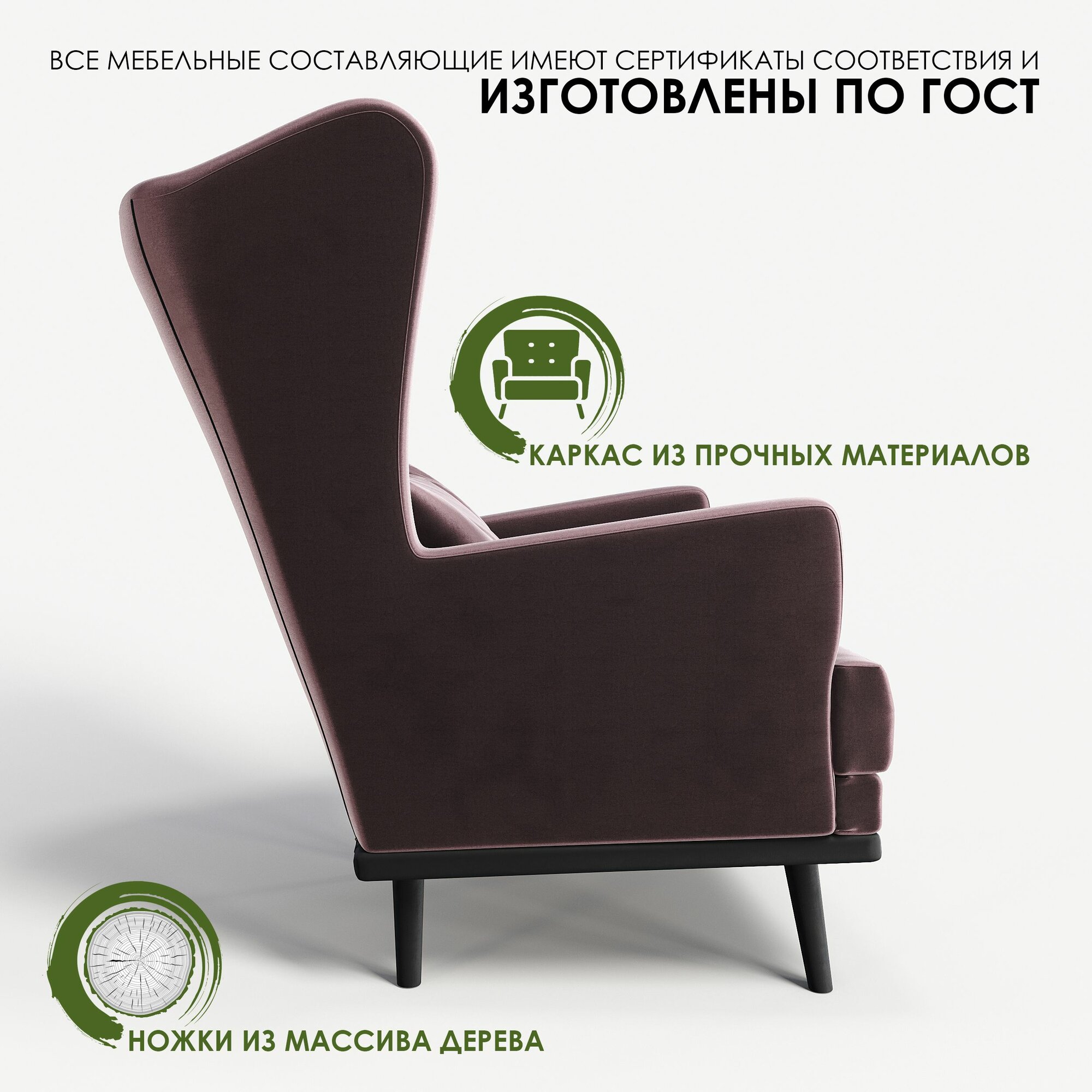 Мягкое кресло с ушами Фантазёр Z-1 на высоких ножках, для отдыха и чтения книг. В гостиную, балкон, спальню и переговорную комнату.