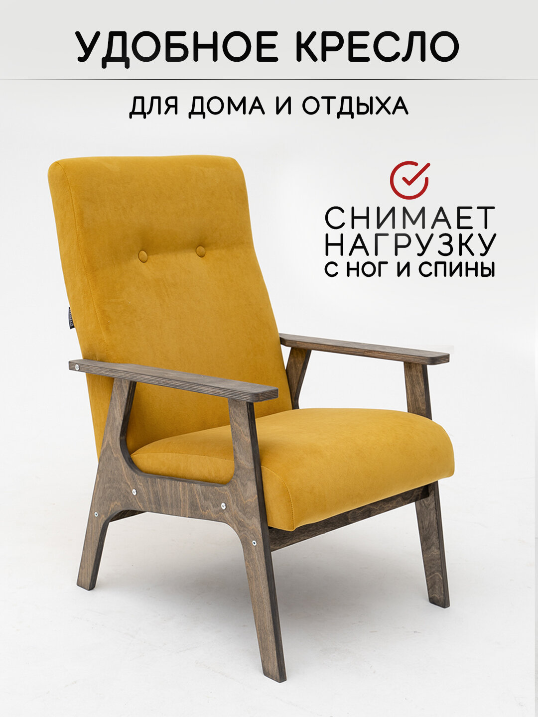 Кресло Zasidelis Chill мягкое горчичное с коричневыми ножками