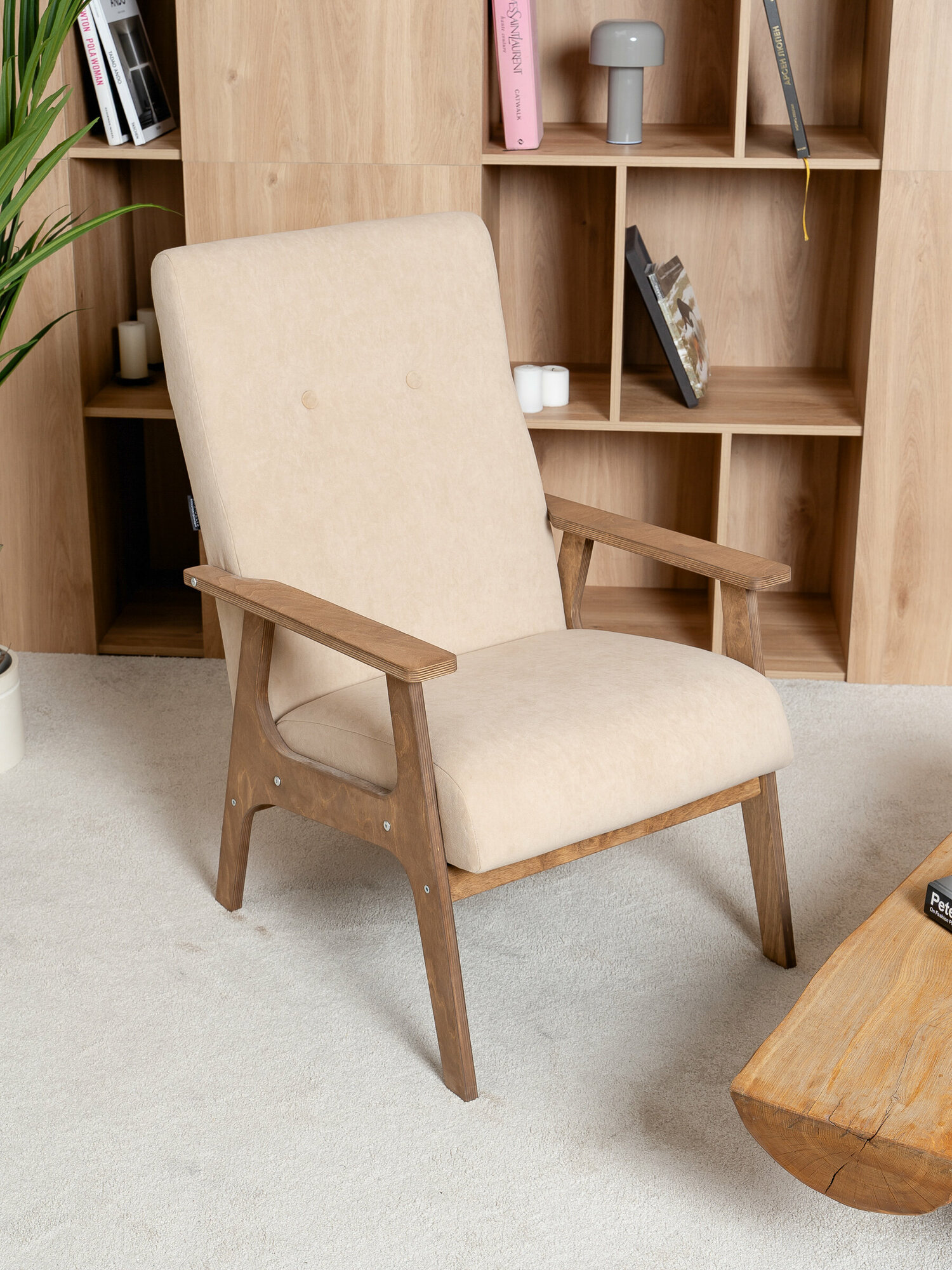 Кресло Чилл Zasidelis мягкое, для гостиной велюр темно-бежевый/ натуральный, 76x59x91 до 130кг