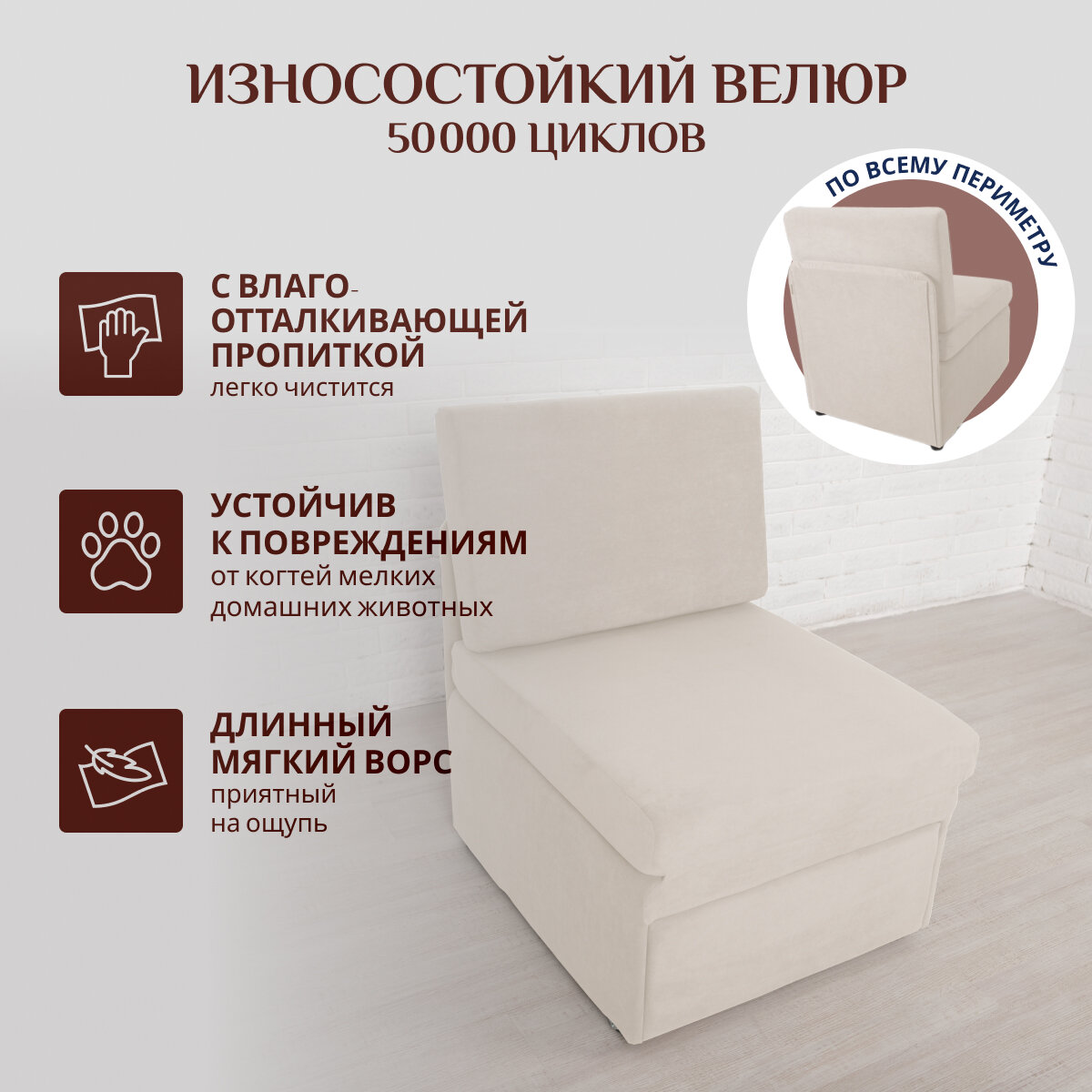 Кресло-кровать на балкон Кресло Brendoss 505 раскладное, без подлокотников, материал износостойкий велюр, цвет молочный