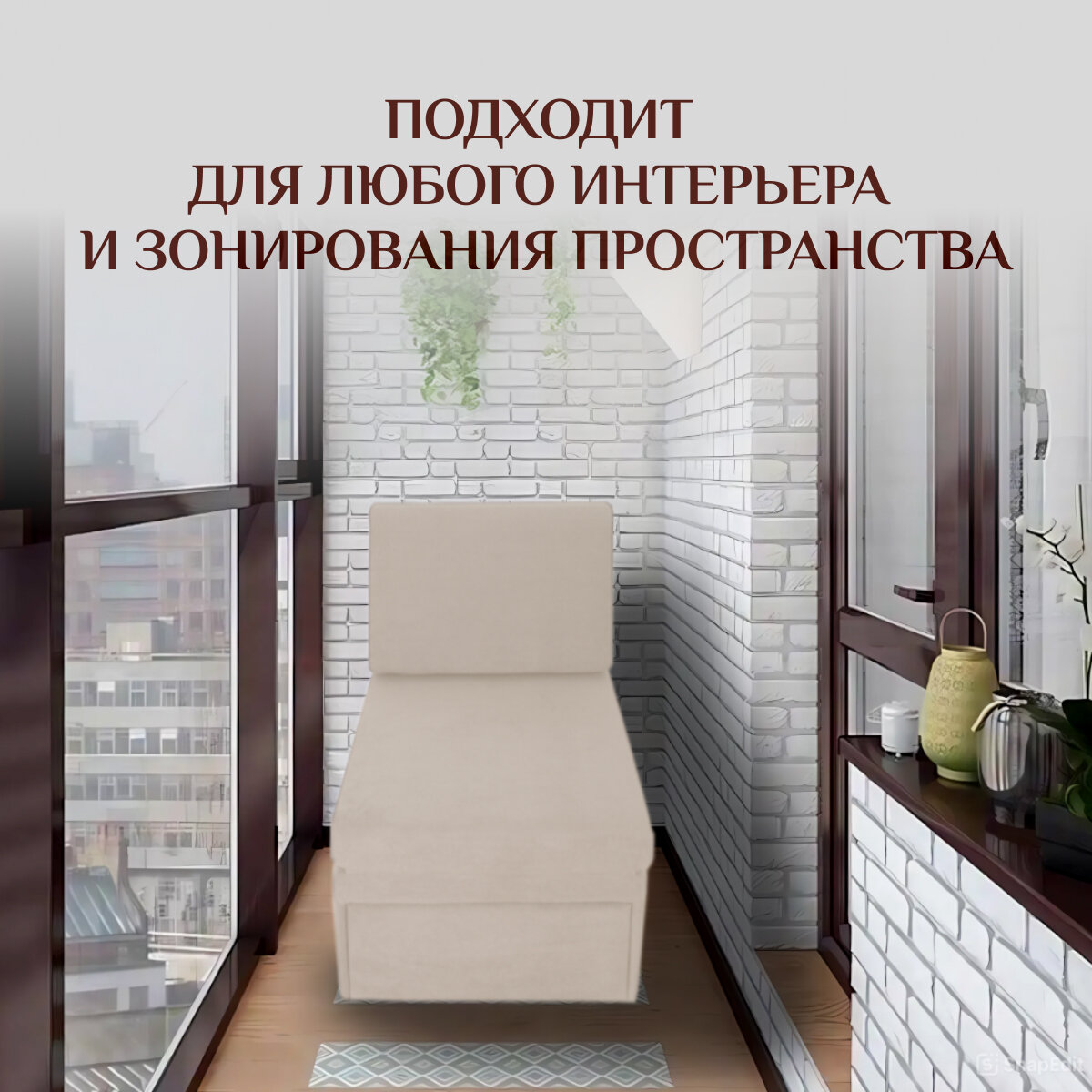 Кресло-кровать на балкон Кресло Brendoss 505 раскладное, без подлокотников, материал износостойкий велюр, цвет бежевый