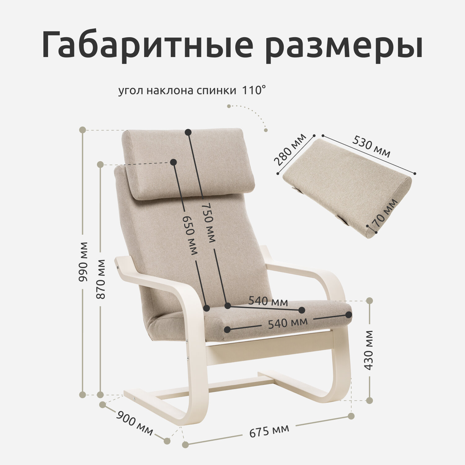 | Дополнительная информация | Высота от пола до сиденья — 430 Ширина подлокотника — 70 мм. Толщина мягкого элемента — 100 мм. Высота подлокотников от пола — 500 мм. Высота от сиденья до подлокотника— 100/140 мм. Размер подушки под голову — 530x280x70 мм. Наполнитель: поролон марки ST 1828, высшего сорта, толщиной 80мм. Ширина сиденья — 540 Глубина сиденья — 540 Высота спинки (с подушкой) — 750 Высота спинки (без подушкой) — 646 |