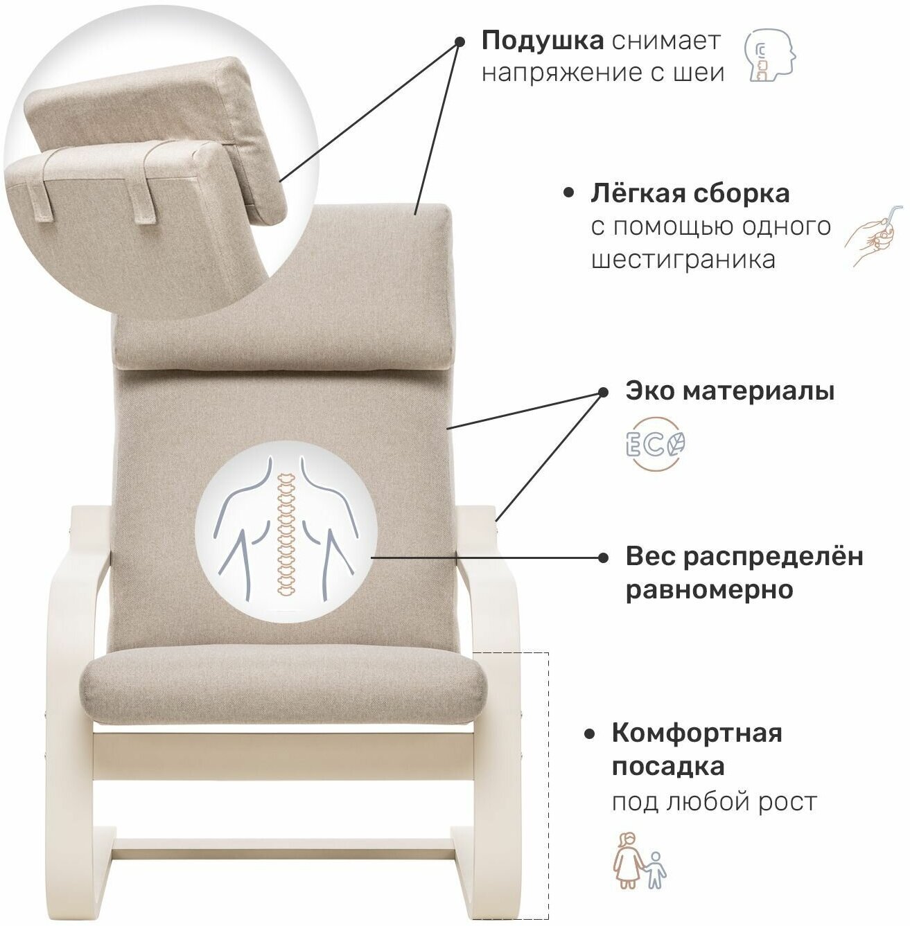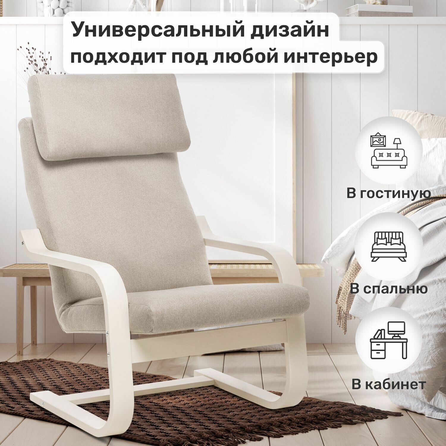Купить Кресло Leset Ниас, Слоновая кость, ткань Lunar Ivory (бежевая)