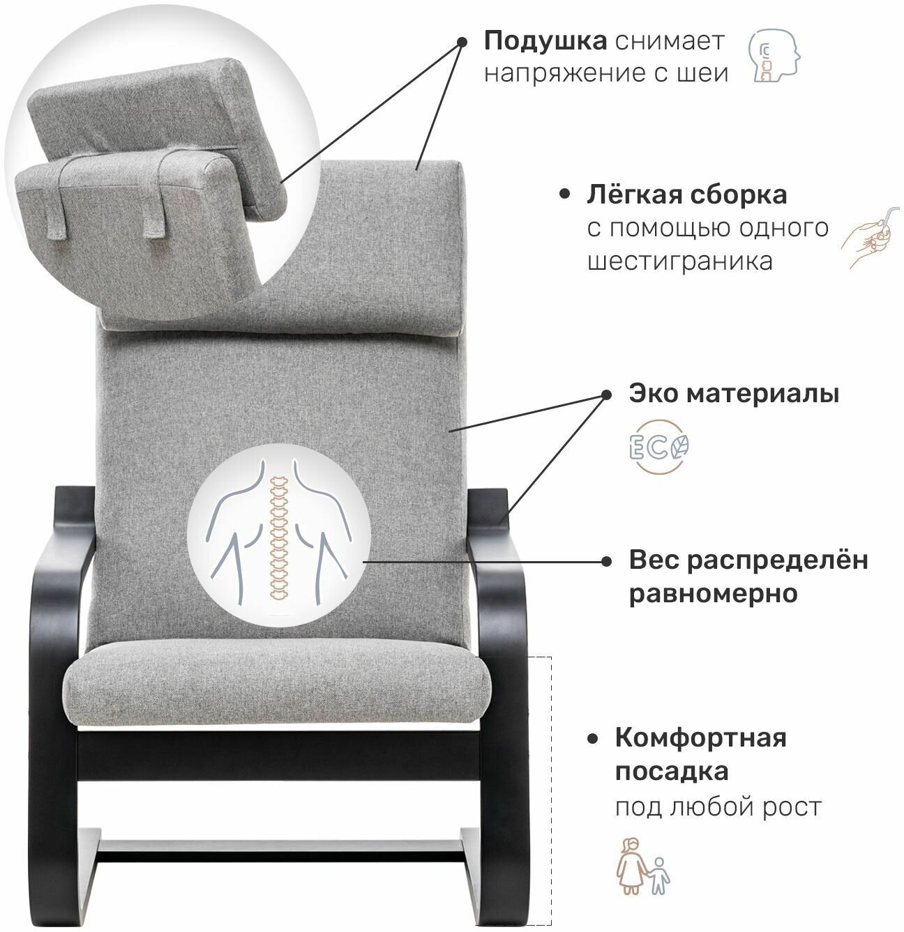 Купить Кресло Leset Ниас, Венге, ткань Lunar Ash (серая)