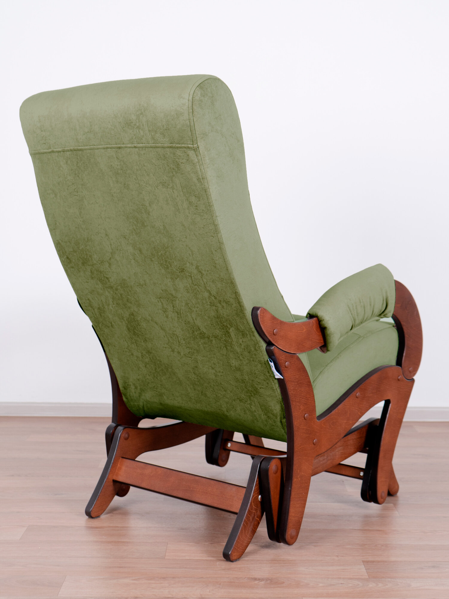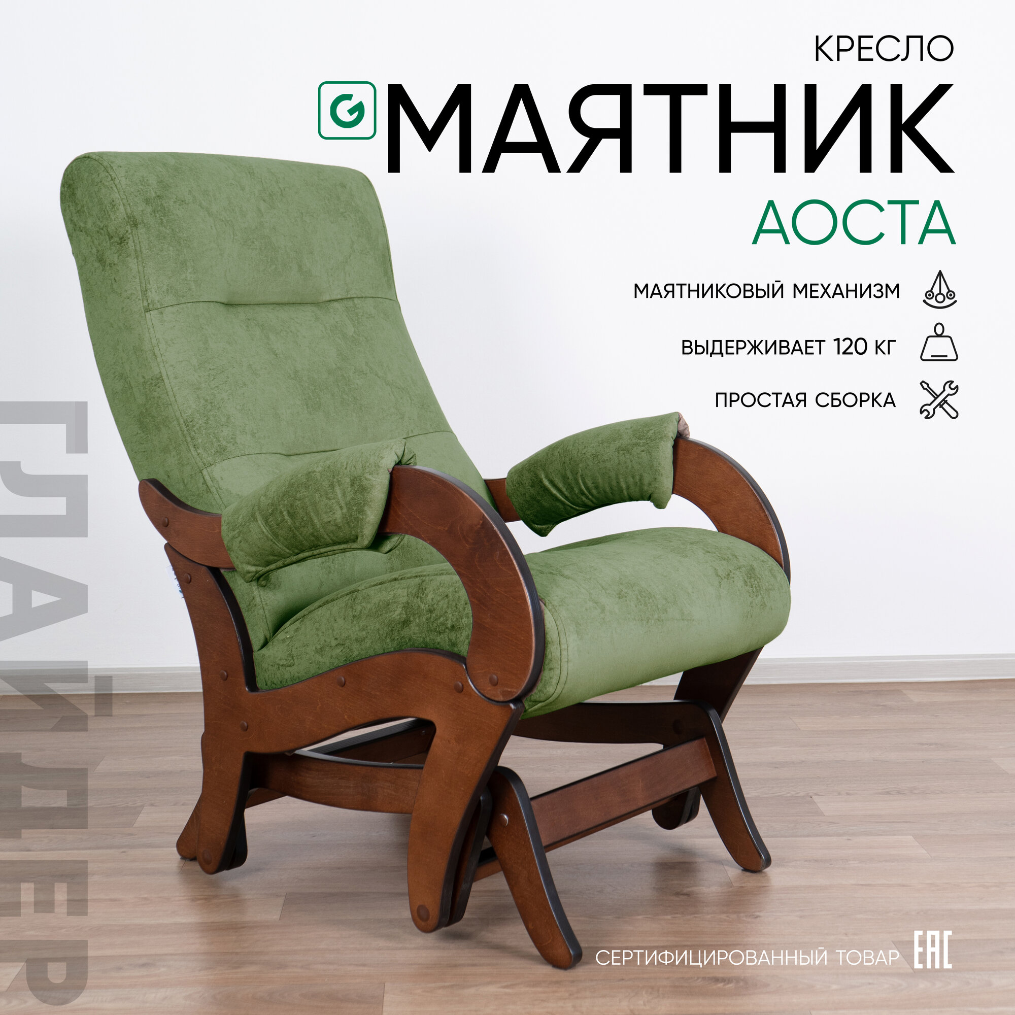 Купить Кресло-качалка с маятниковым механизмом Glider Аоста в ткани Микровелюр, цвет зеленый / коричневый орех