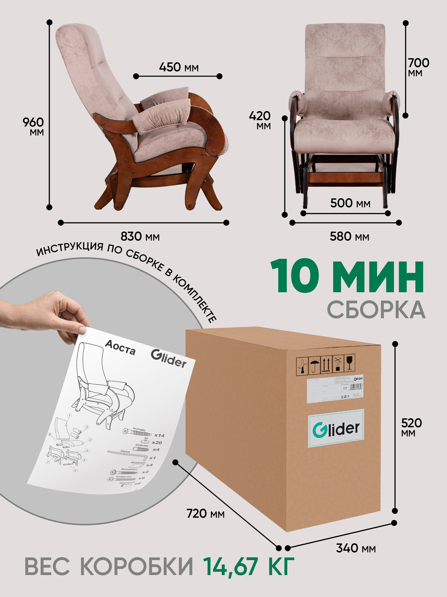 СохранитьКресло-качалка с маятниковым механизмом Glider Аоста в ткани Микровелюр, цвет бежевый / коричневый орех интересное: