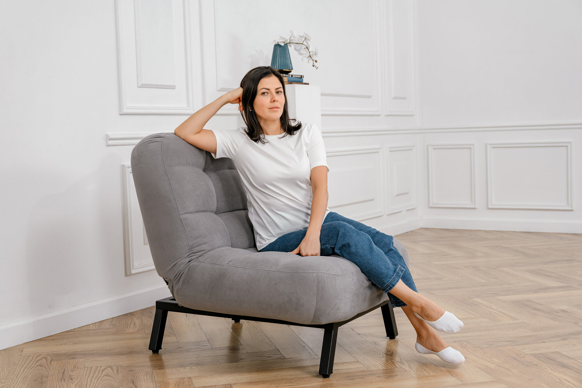 Кресло Brendoss 306 раскладное с регулируемой спинкой лофт, механизм клик-кляк, материал износостойкий велюр, цвет графит