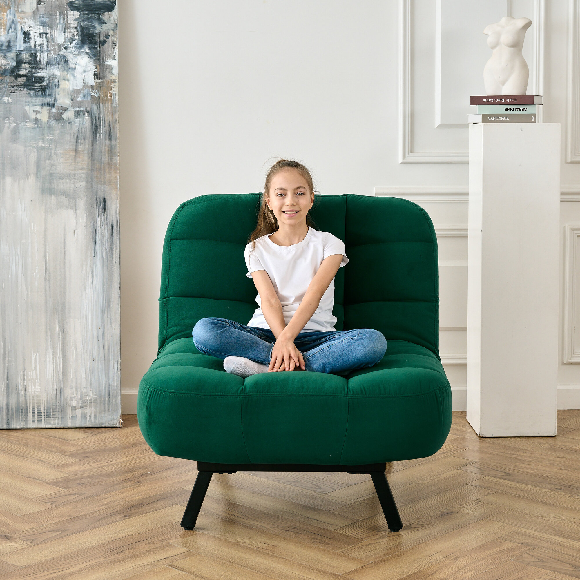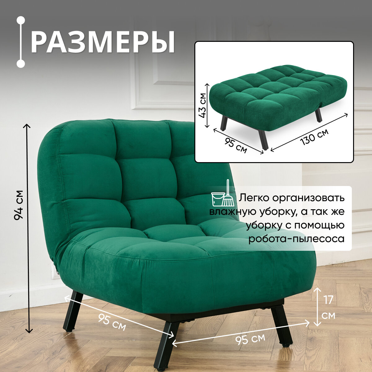 Кресло Brendoss 306 раскладное с регулируемой спинкой лофт, механизм клик-кляк, материал износостойкий велюр, цвет изумрудный