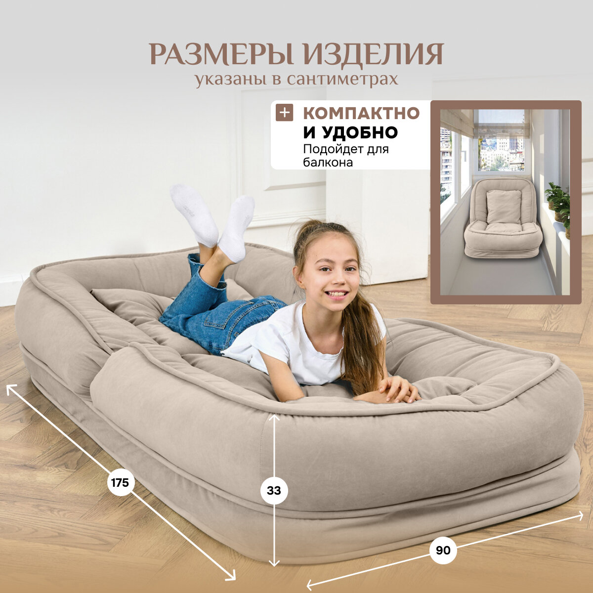 СохранитьБескаркасное кресло кровать диван детский Brendoss "777" цвет бежевый интересное: