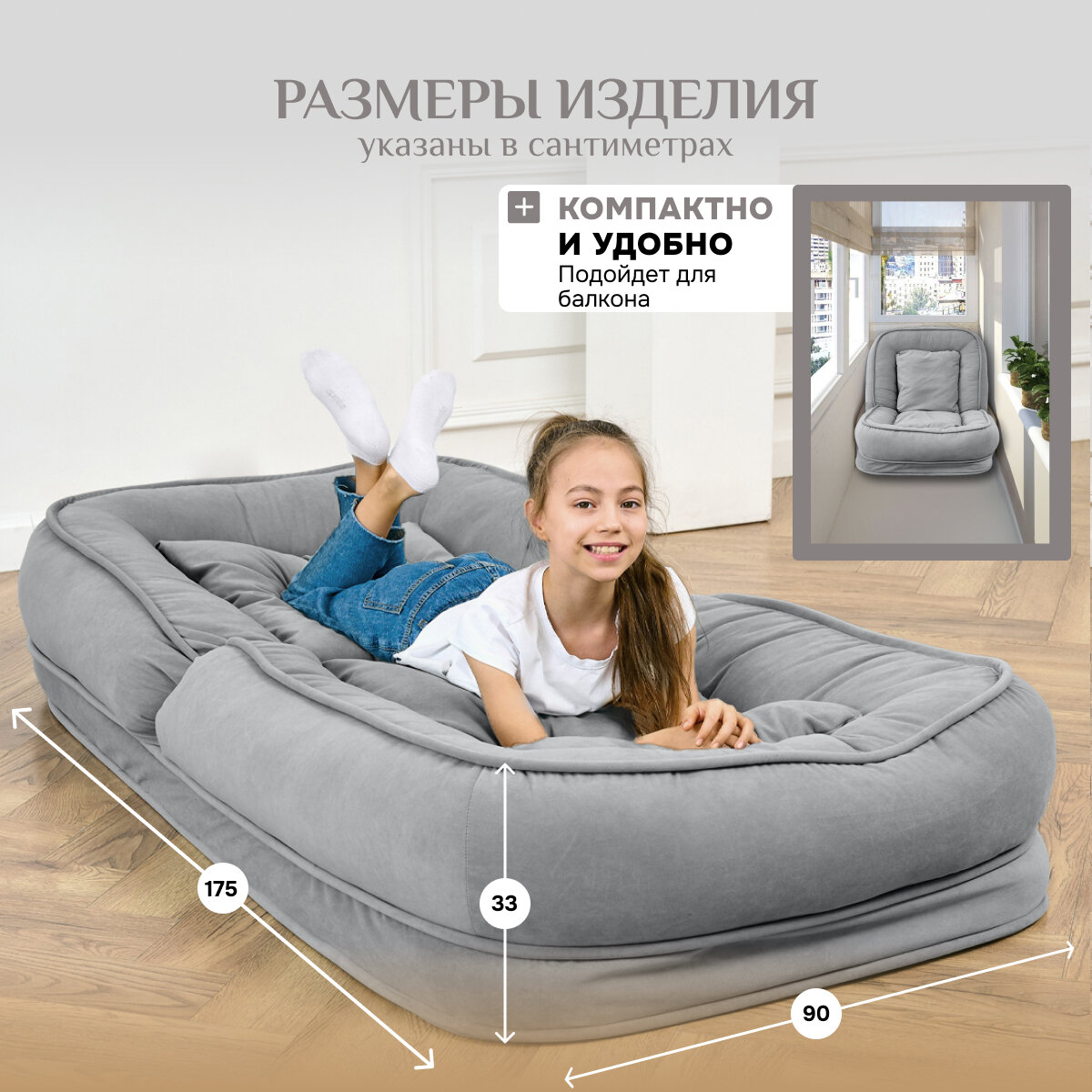 СохранитьБескаркасное кресло кровать диван детский Brendoss "777" цвет серый интересное:
