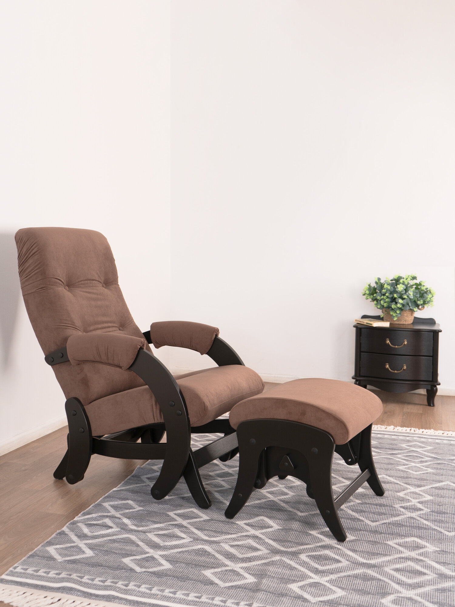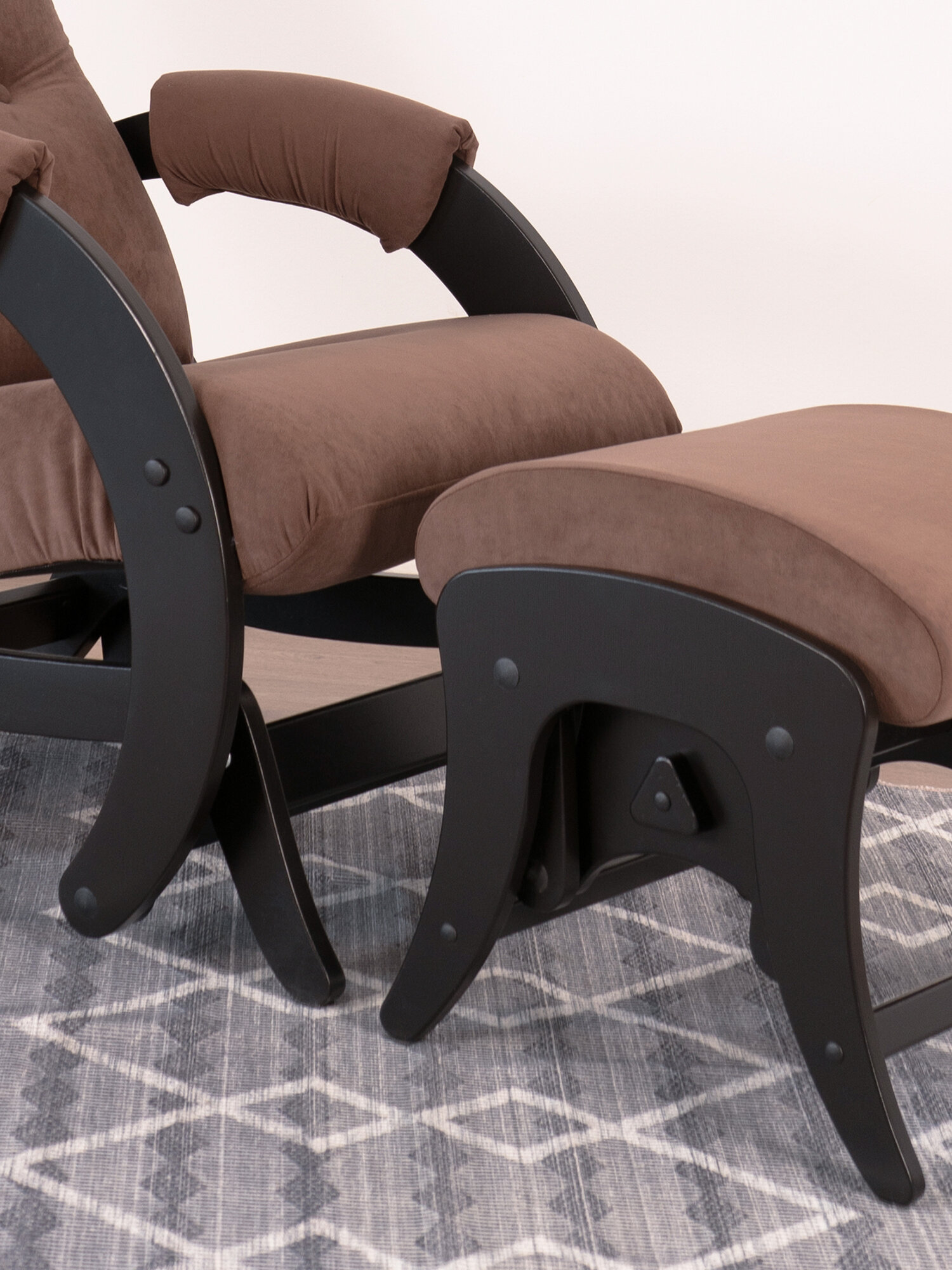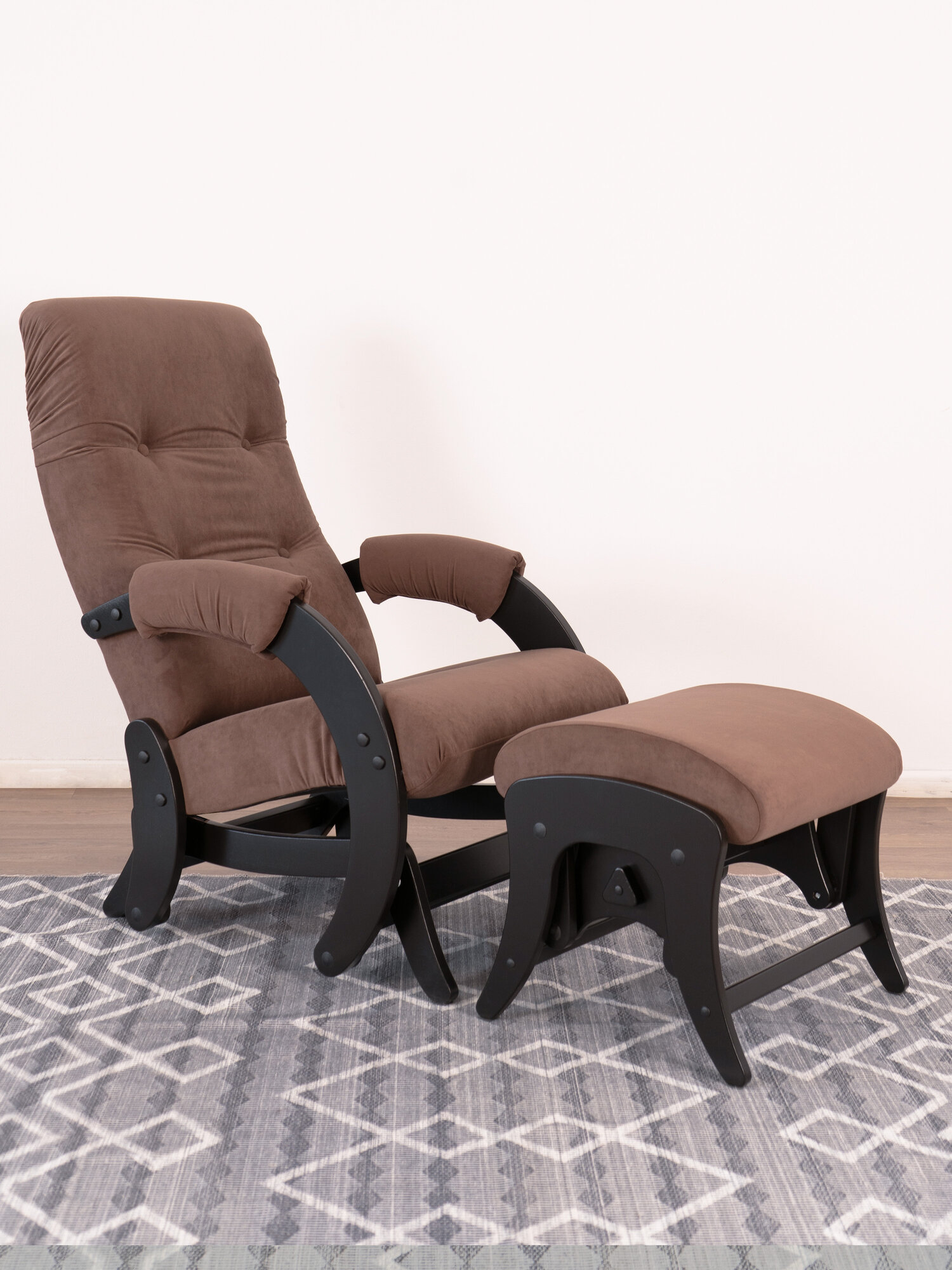 Комплект для дома и дачи Glider кресло-качалка 68 c пуфом в ткани Велюр, маятниковый механизм, цвет коричневый