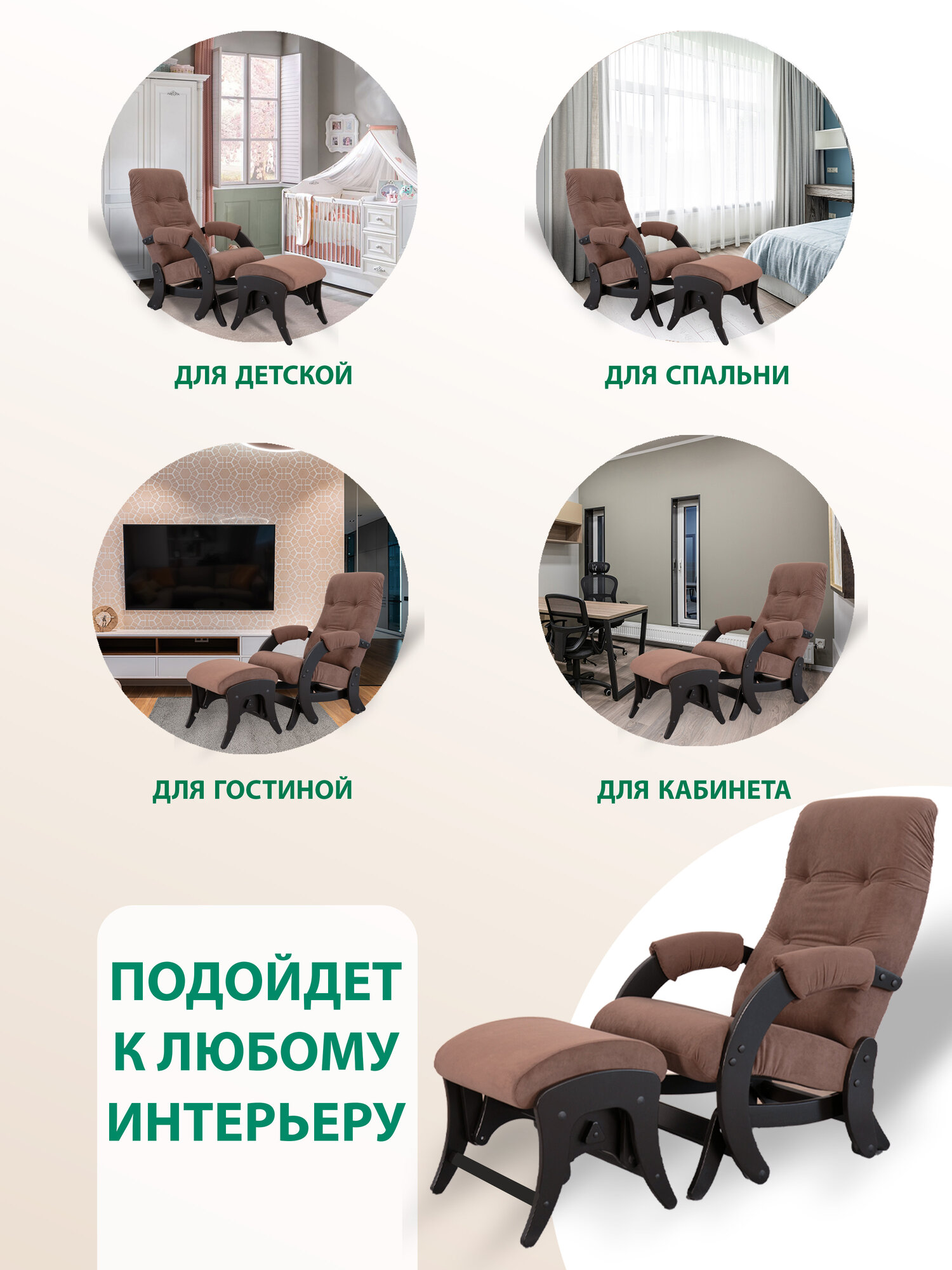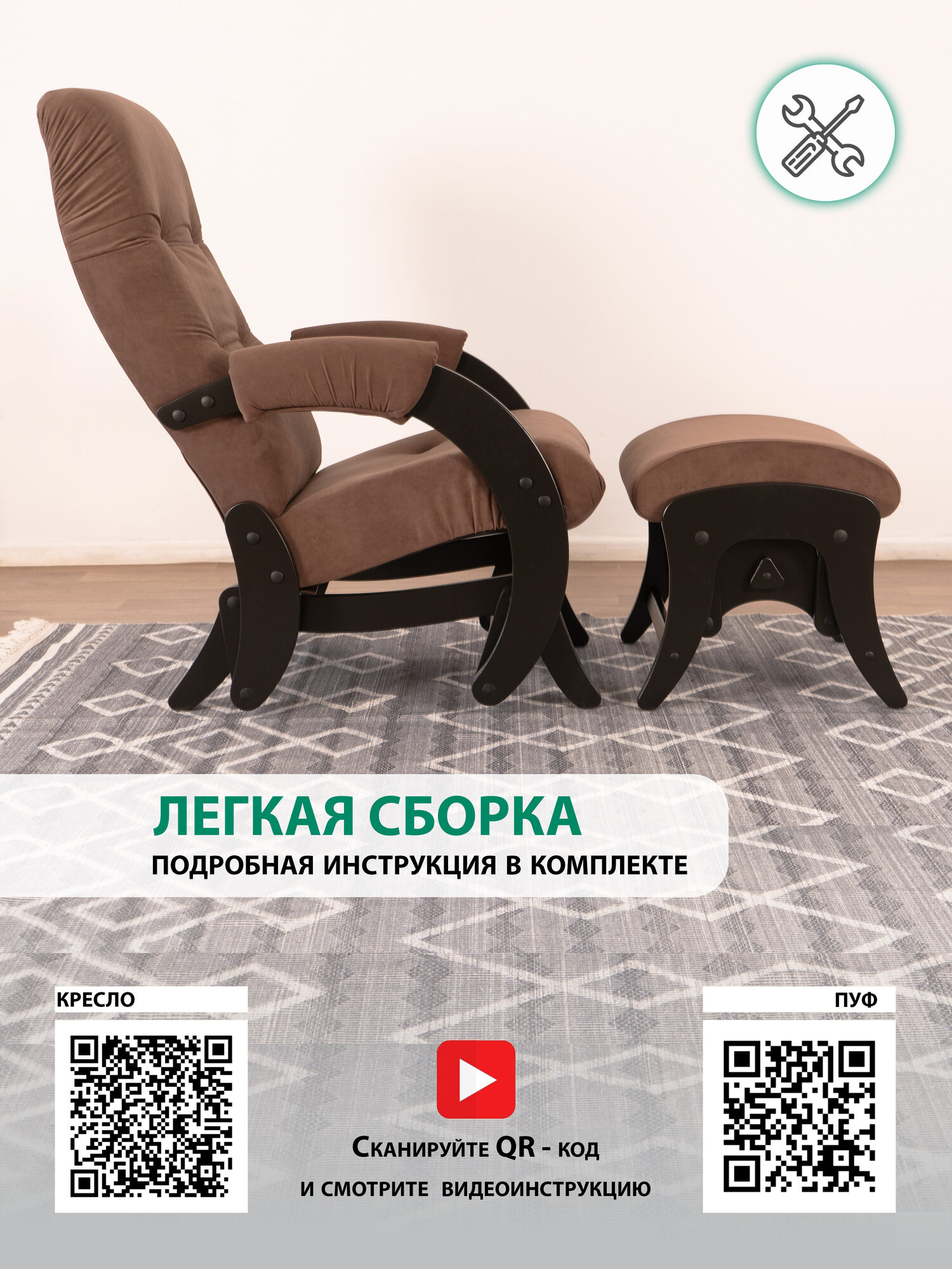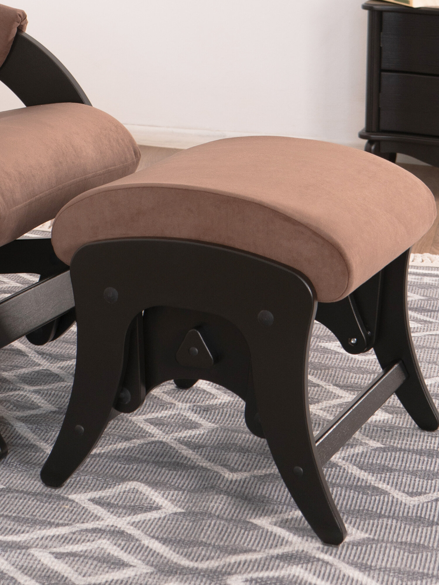 Комплект для дома и дачи Glider кресло-качалка 68 c пуфом в ткани Велюр, маятниковый механизм, цвет коричневый