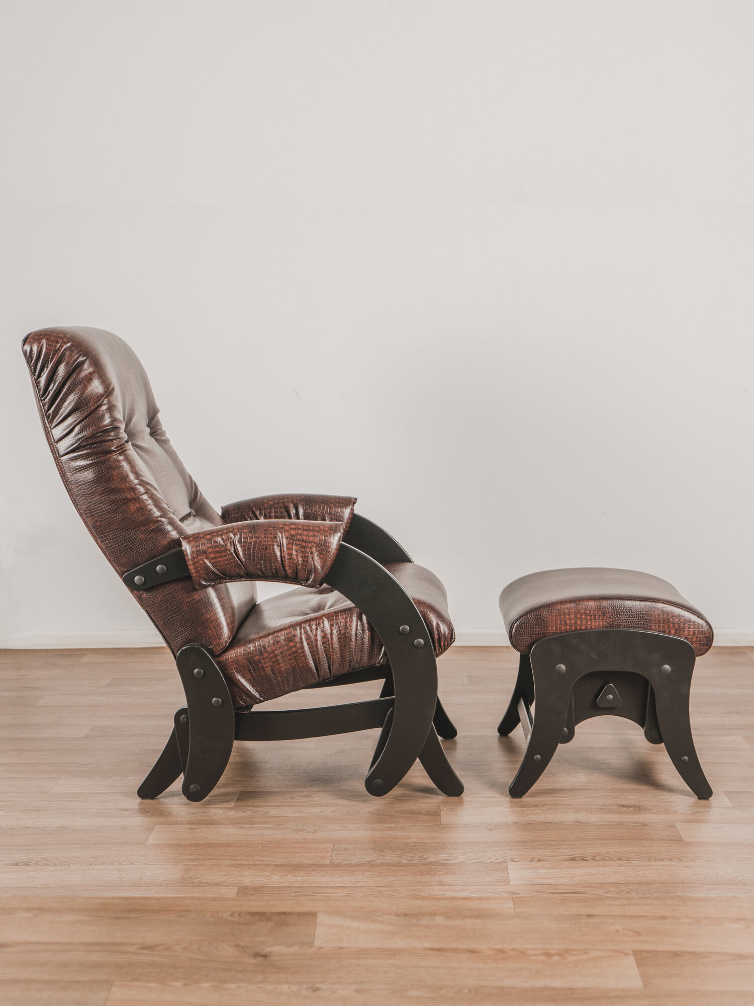 Купить Комплект для дома и дачи Glider кресло-качалка 68 c пуфом в эко-коже, маятниковый механизм, цвет коричневый
