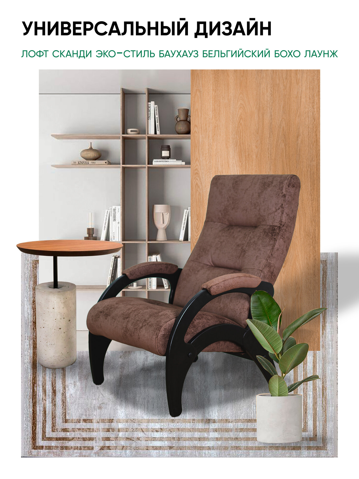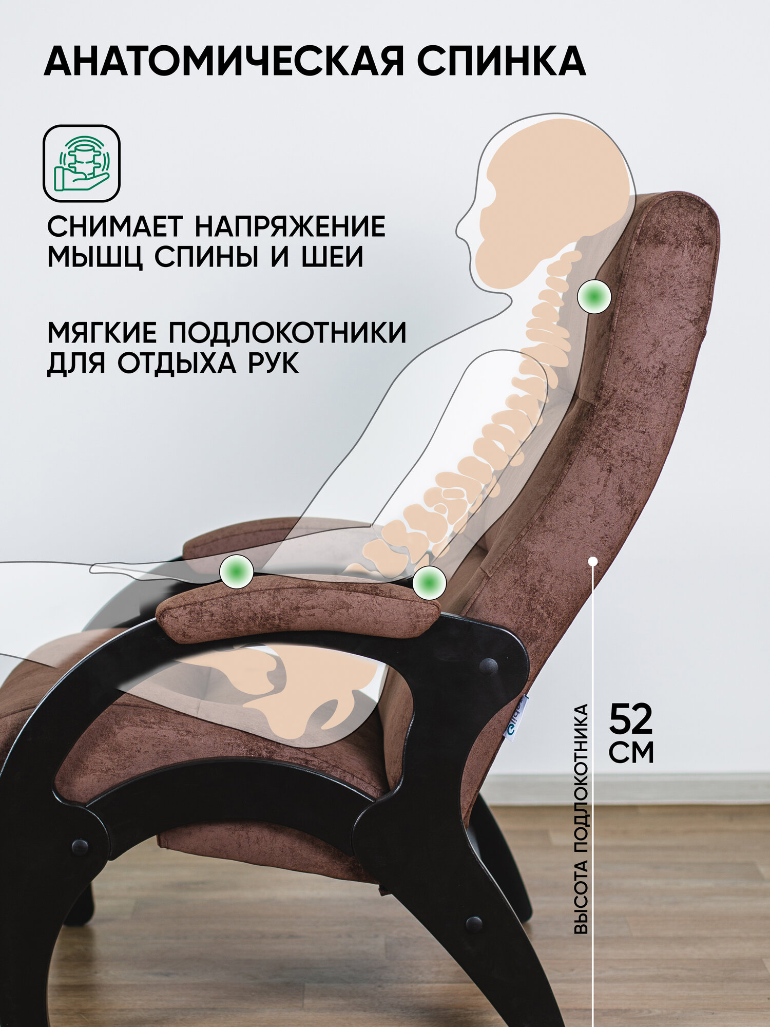 Купить Кресло мягкое для отдыха, дома и дачи Glider Дельфин с мягкими подлокотниками и регулируемой спинкой 3 положения, цвет коричневый
