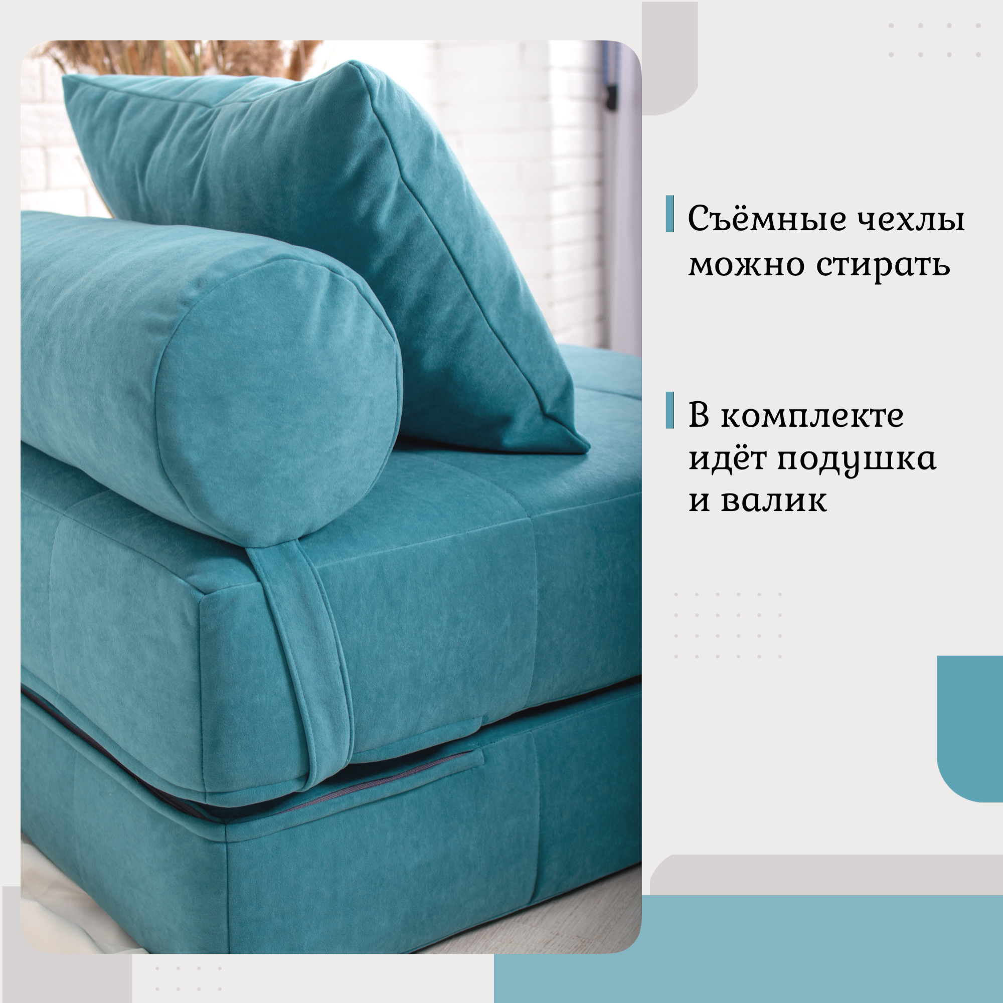 | Особенности | без колесиков, без ножек, для домашнего кинотеатра, с подушкой, съемный чехол |
