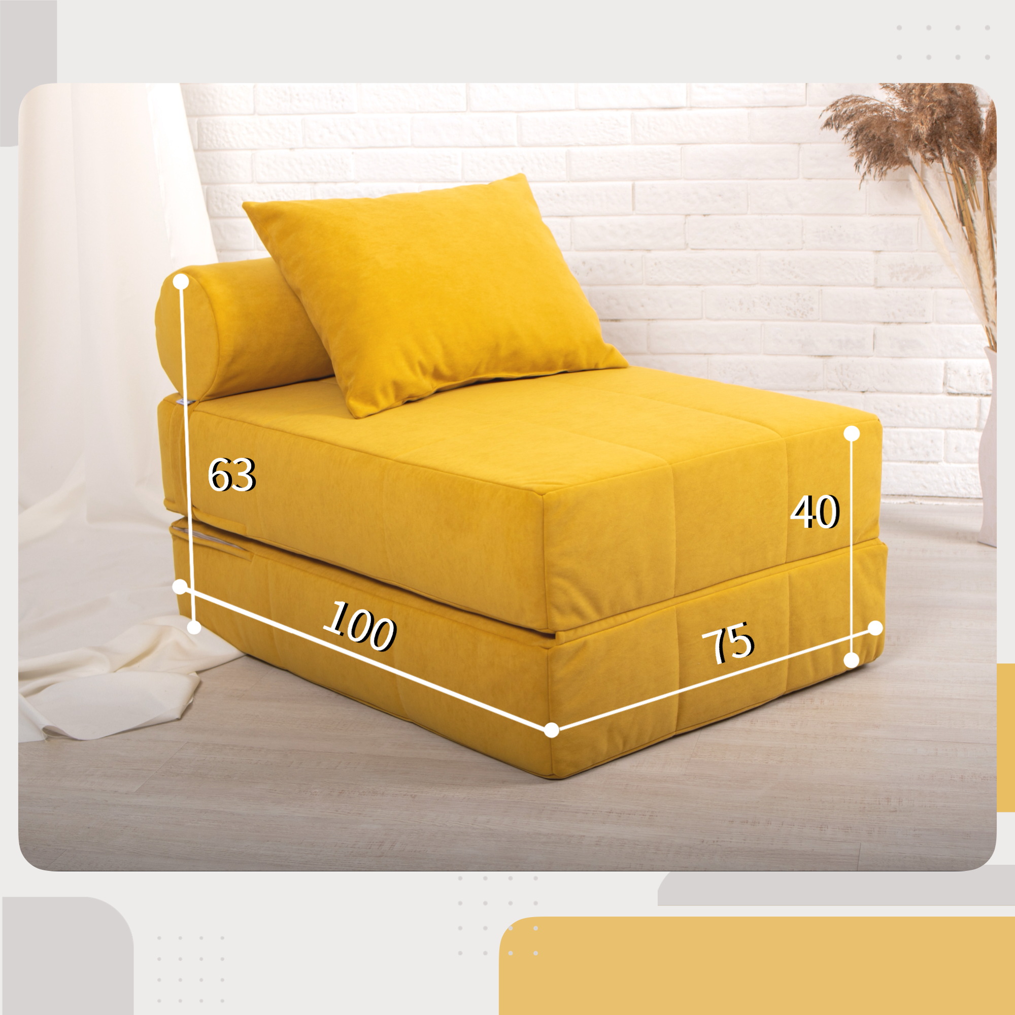 Кресло кровать EDLEN LAUTTAA, велюр Yellow, спальное место 75х200 см