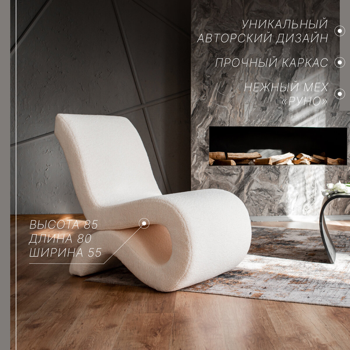 Дизайнерское кресло "Альфа" Белое(Milk) интересное: