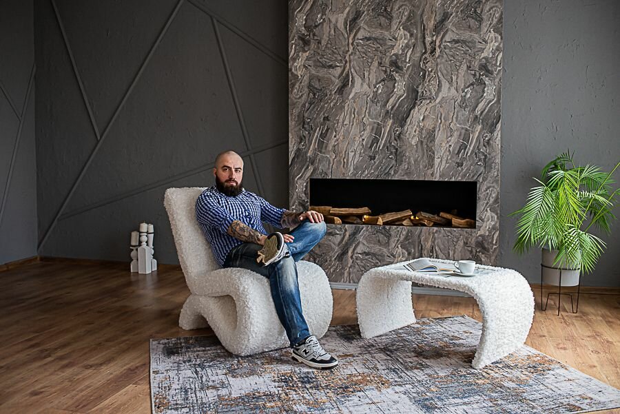 Дизайнерское кресло для отдыха в гостиную Альфа Прайм . Белый Бриллиант