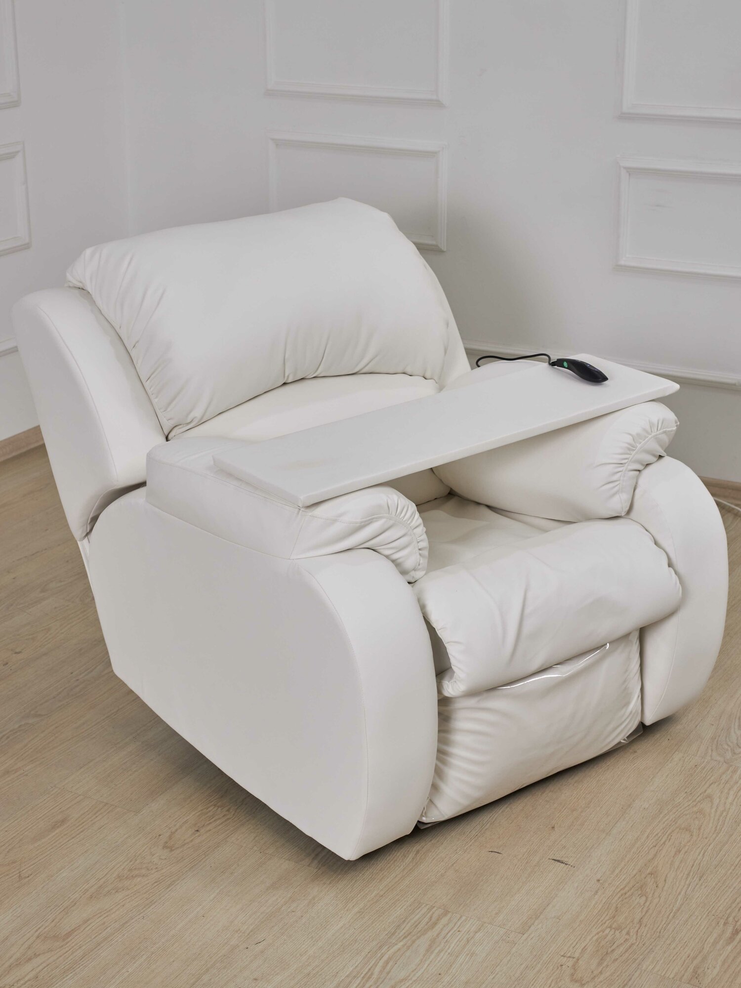 Кресло-реклайнер LiyonMebel, на электроприводе, экокожа, белый, с мягкими подлокотниками, 92х110х90 см