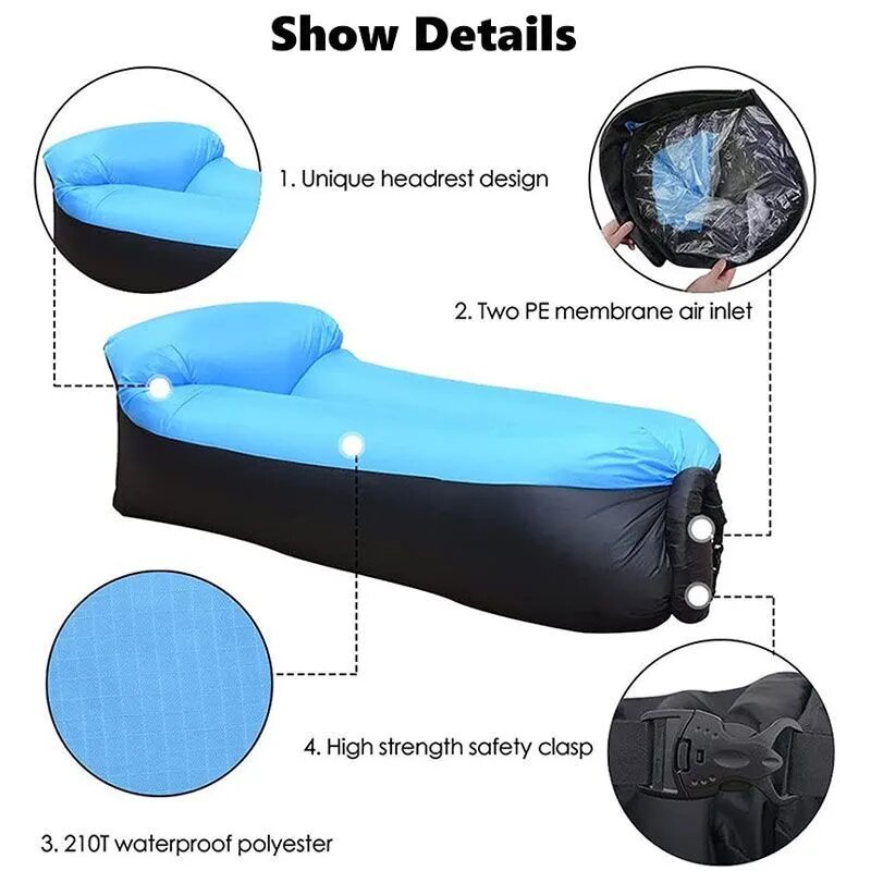 Надувной ламзак с подушкой, черно-голубой интересное: