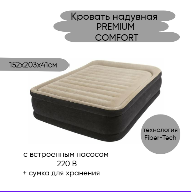 Надувная кровать PREMIUM COMFORT с встроенным насосом 220 В, 152х203х41см интересное: