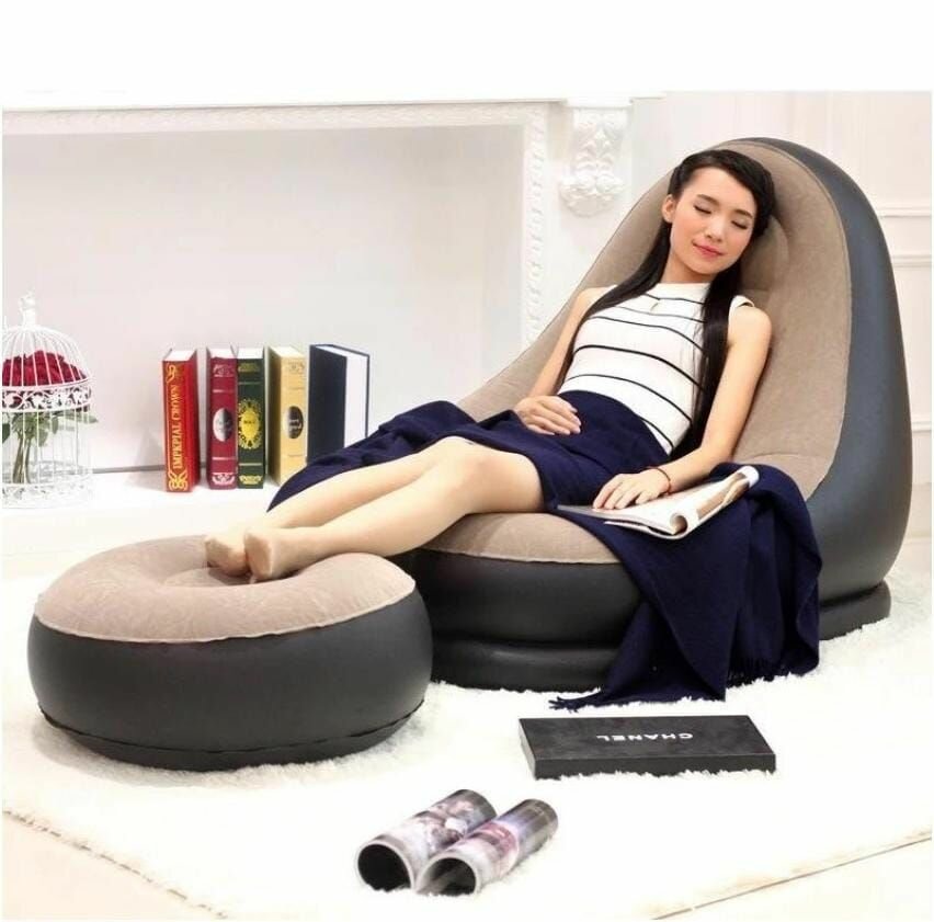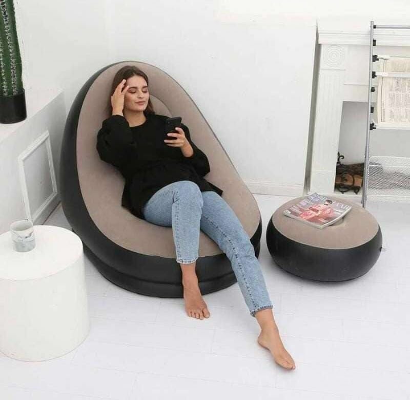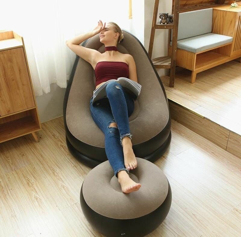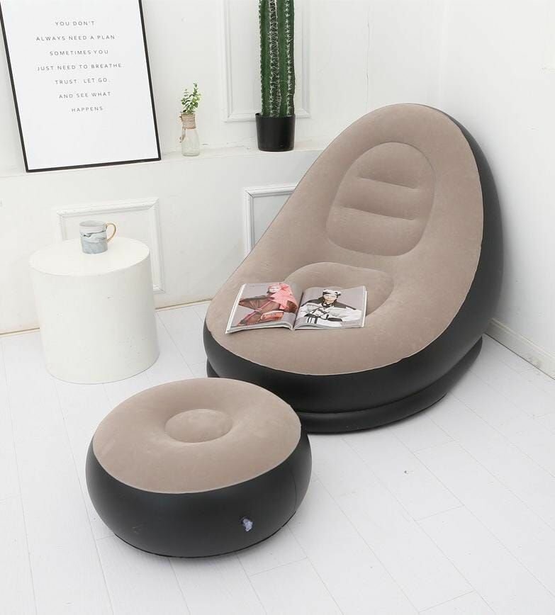 Кресло надувное с пуфиком коричневое 116х98х83 интересное: