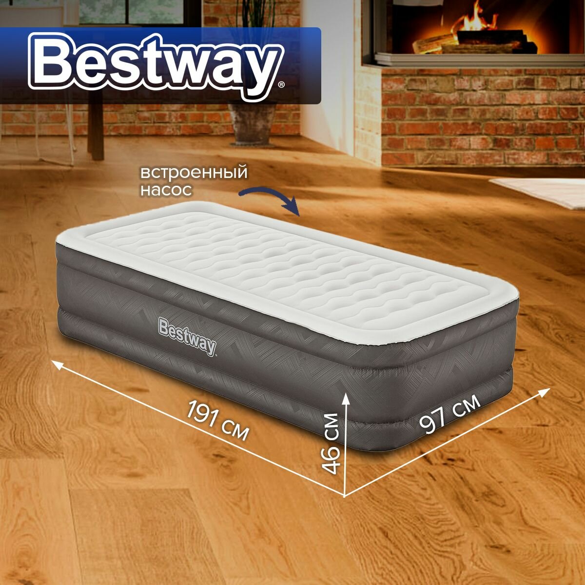 Кровать надувная односпальная Bestway + встр. насос 220В 97х191х46см 69048 интересное:
