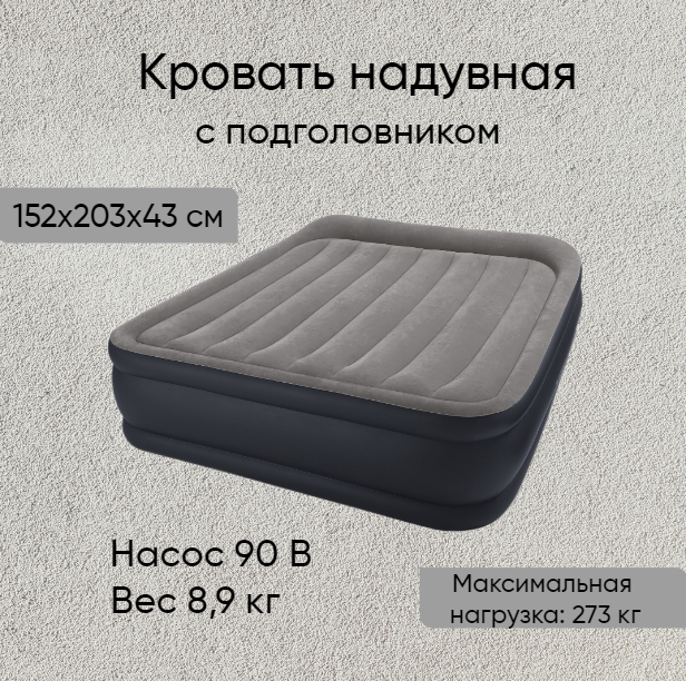 Надувная кровать Deluxe Pillow Rest Raised Bed с подголовником, 152х203х43см интересное: