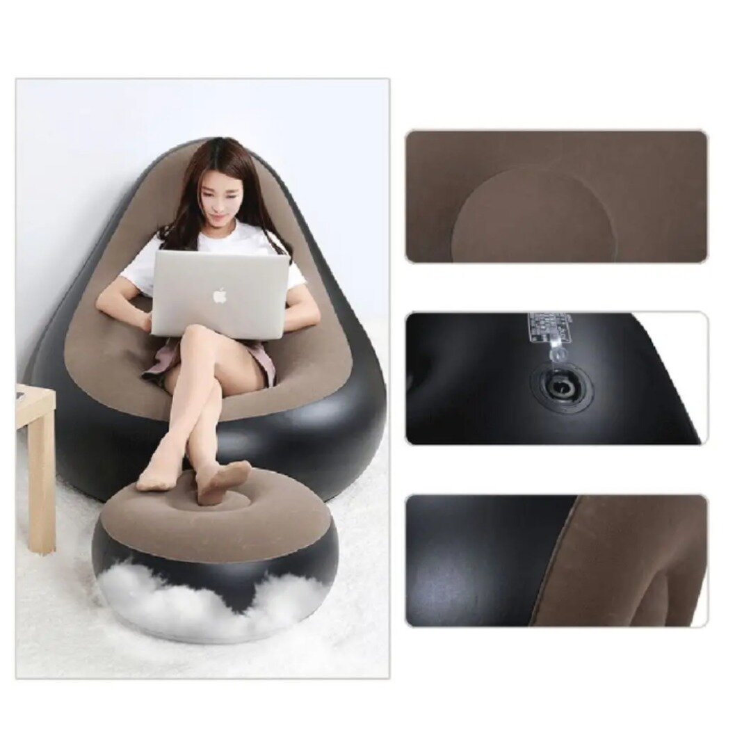 Купить Надувное кресло с пуфом для ног 2 в 1 / Кресло-диван надувной для отдыха / Кресло-мешок с пуфом для дома и дачи / Мягкая мебель
