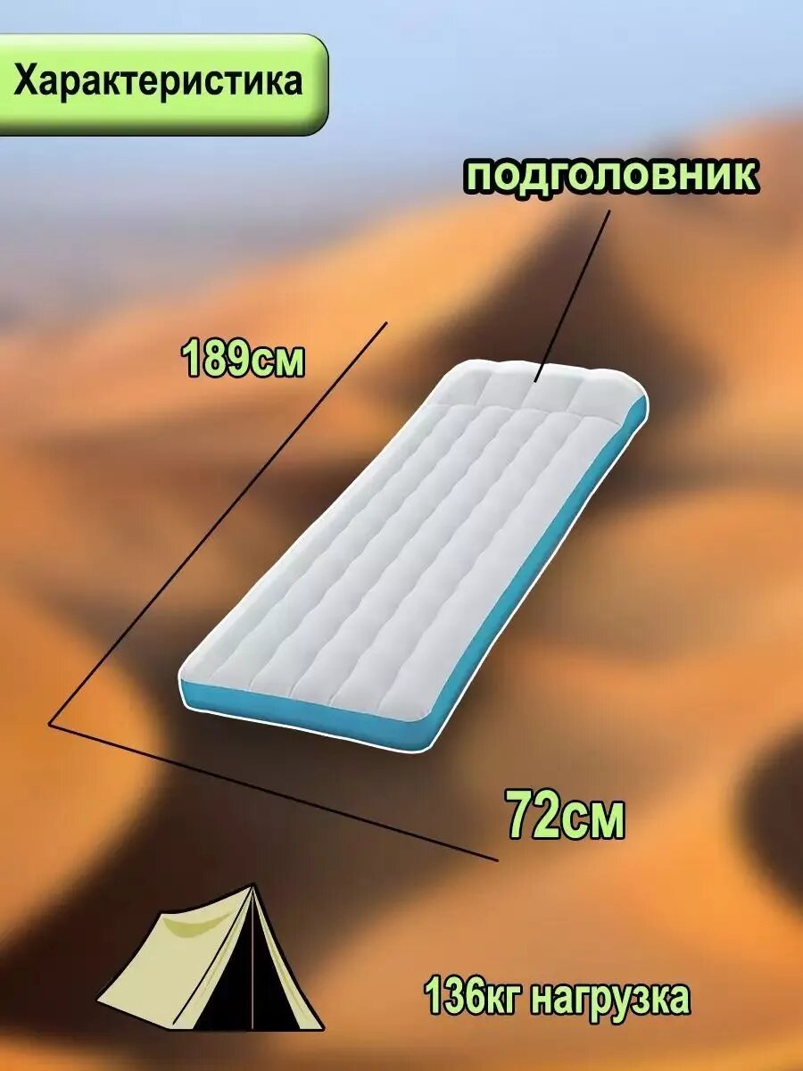 Матрас кемпинговый надувной "следопыт" с насосом, 190x60x12 cм, цв. голубой/серый