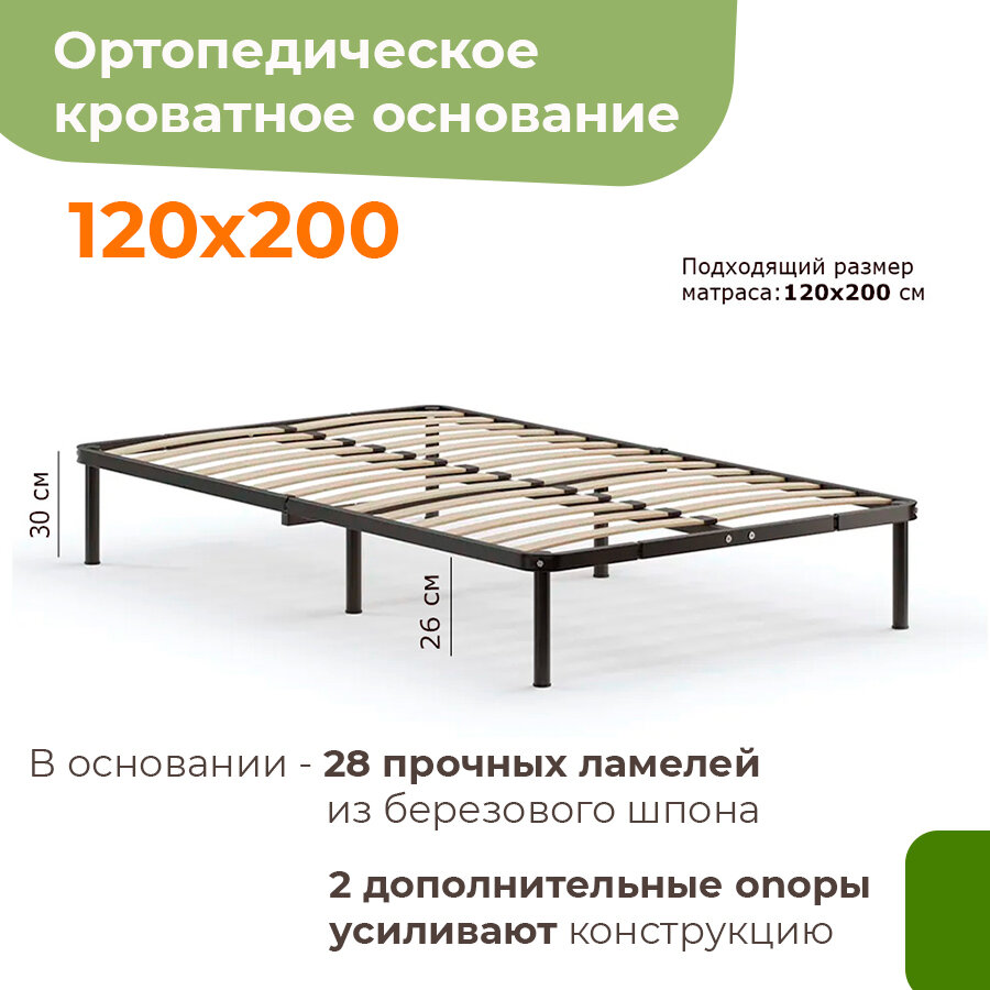 Купить Двуспальное металлическое основание для кровати с матрасодержателем, 120 х 200 см, черное, разборное, с реечным дном