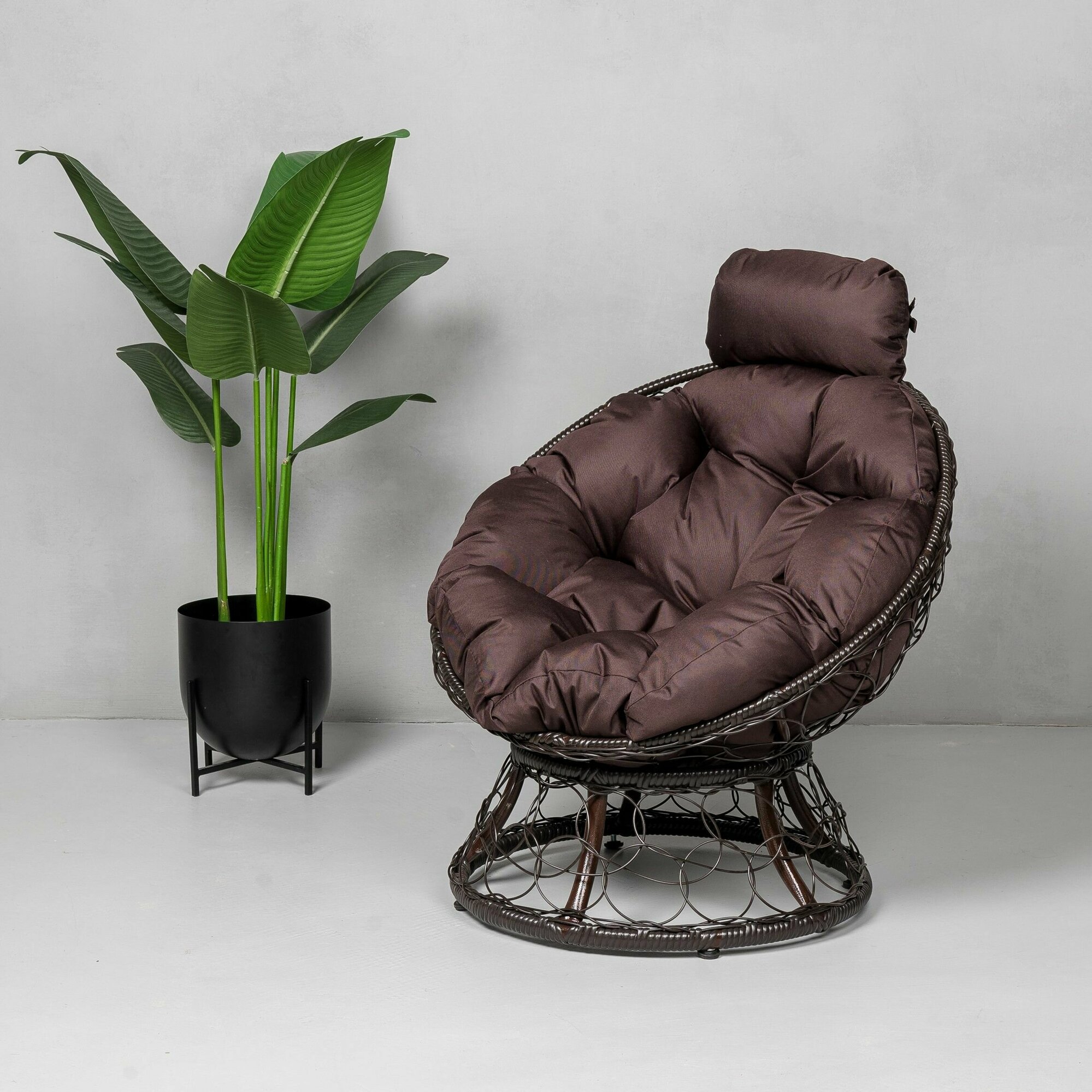 Купить Кресло садовое Папасан на балкон и для дачи, Венге с коричневой подушкой