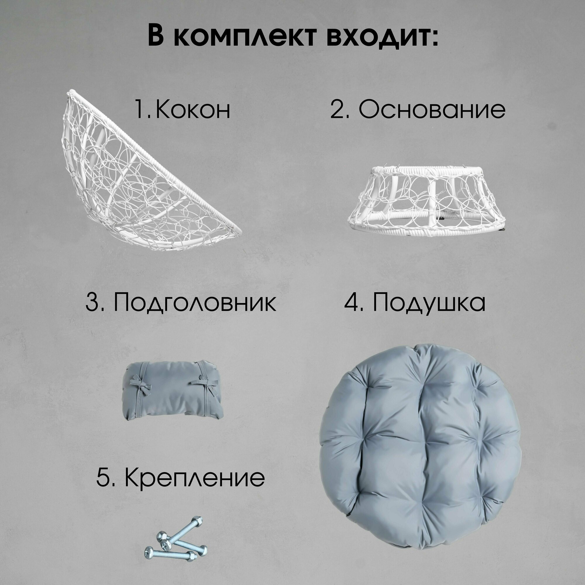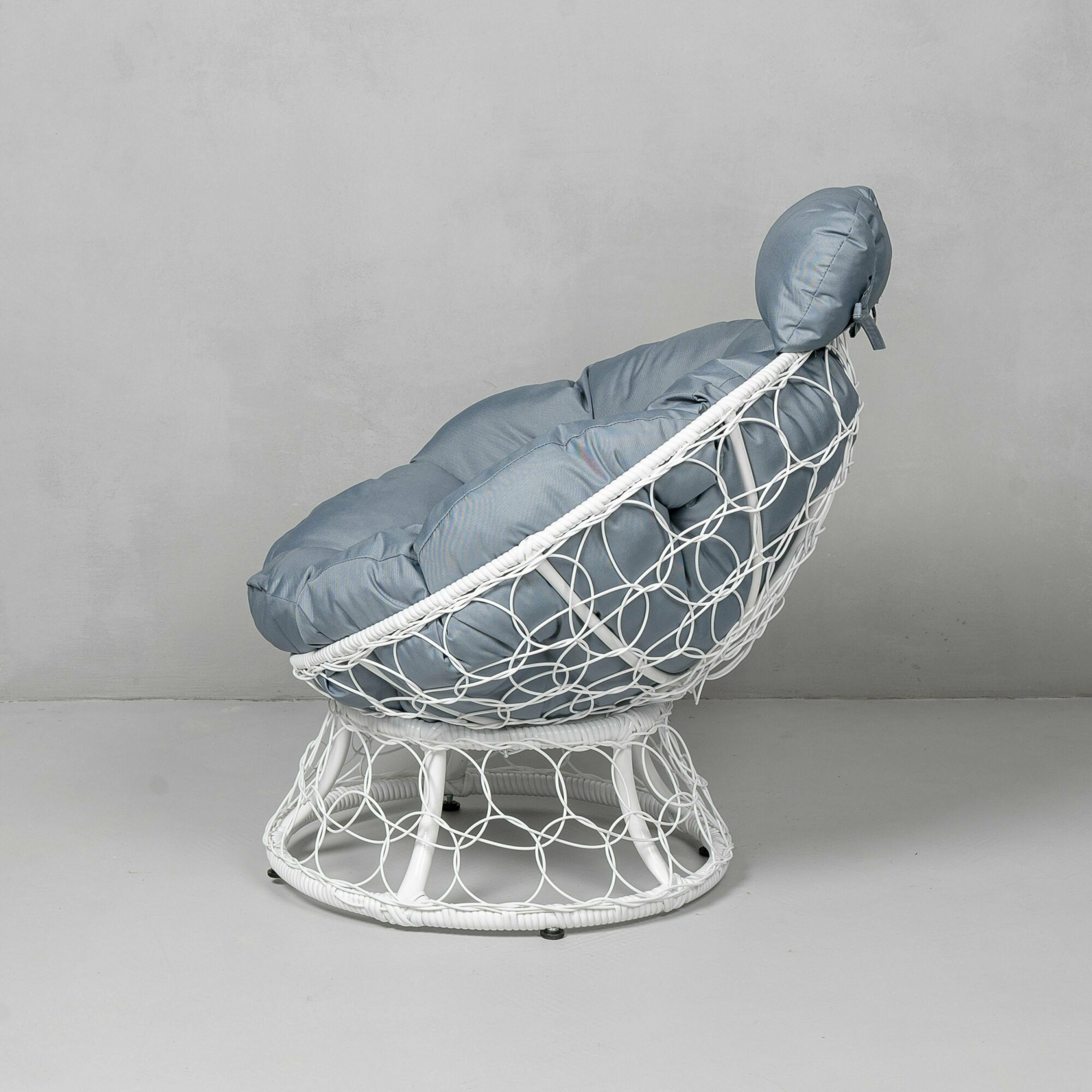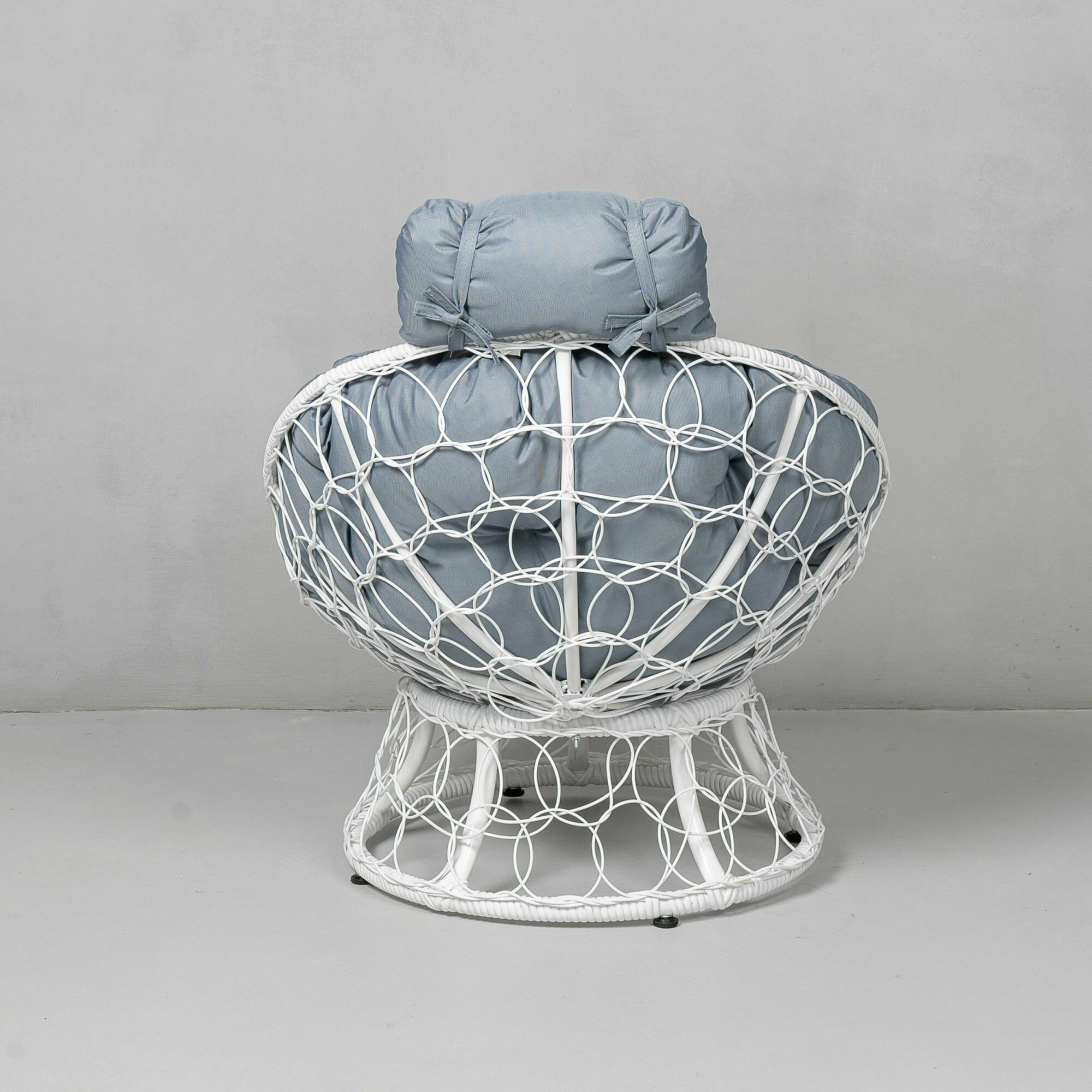 Кресло садовое Папасан на балкон и для дачи, Белый с серой подушкой