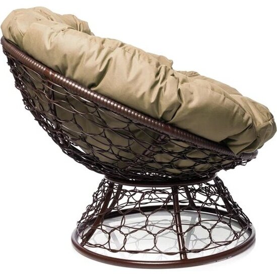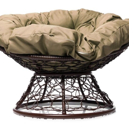 Кресло M-group Папасан ротанг коричневое + бежевая подушка интересное: