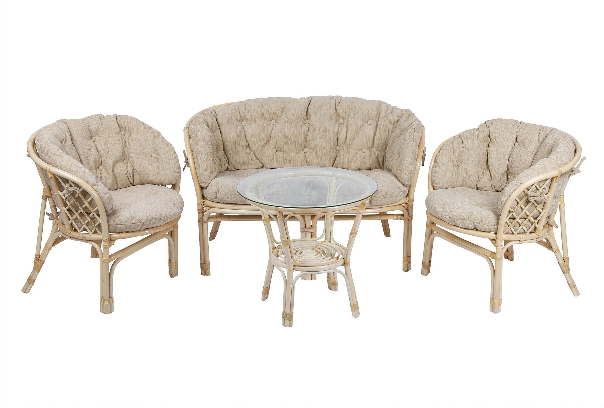 Комплект M-group мамасан, папасан и стол без ротанга белое бежевая подушка