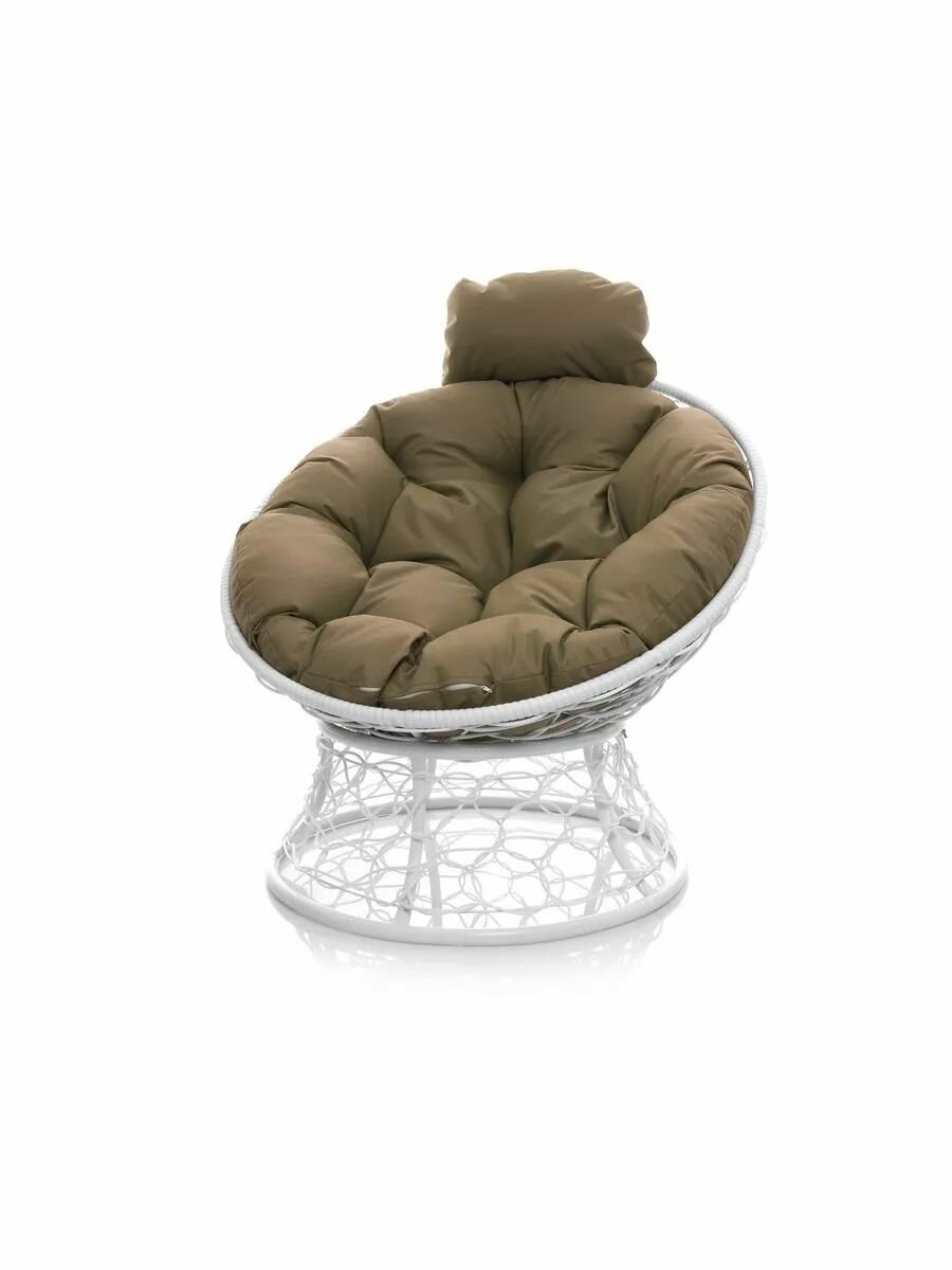 Кресло папасан мини с ротангом белое, коричневая