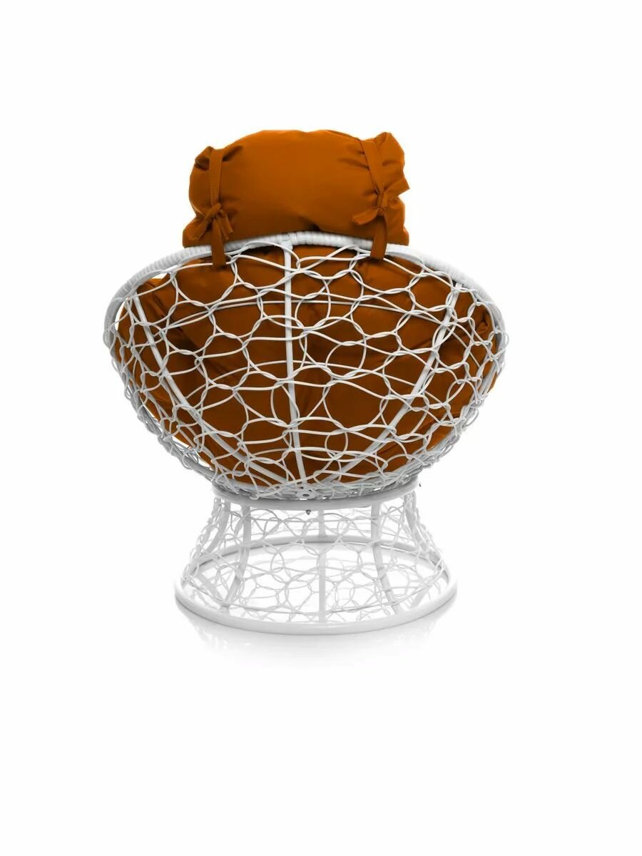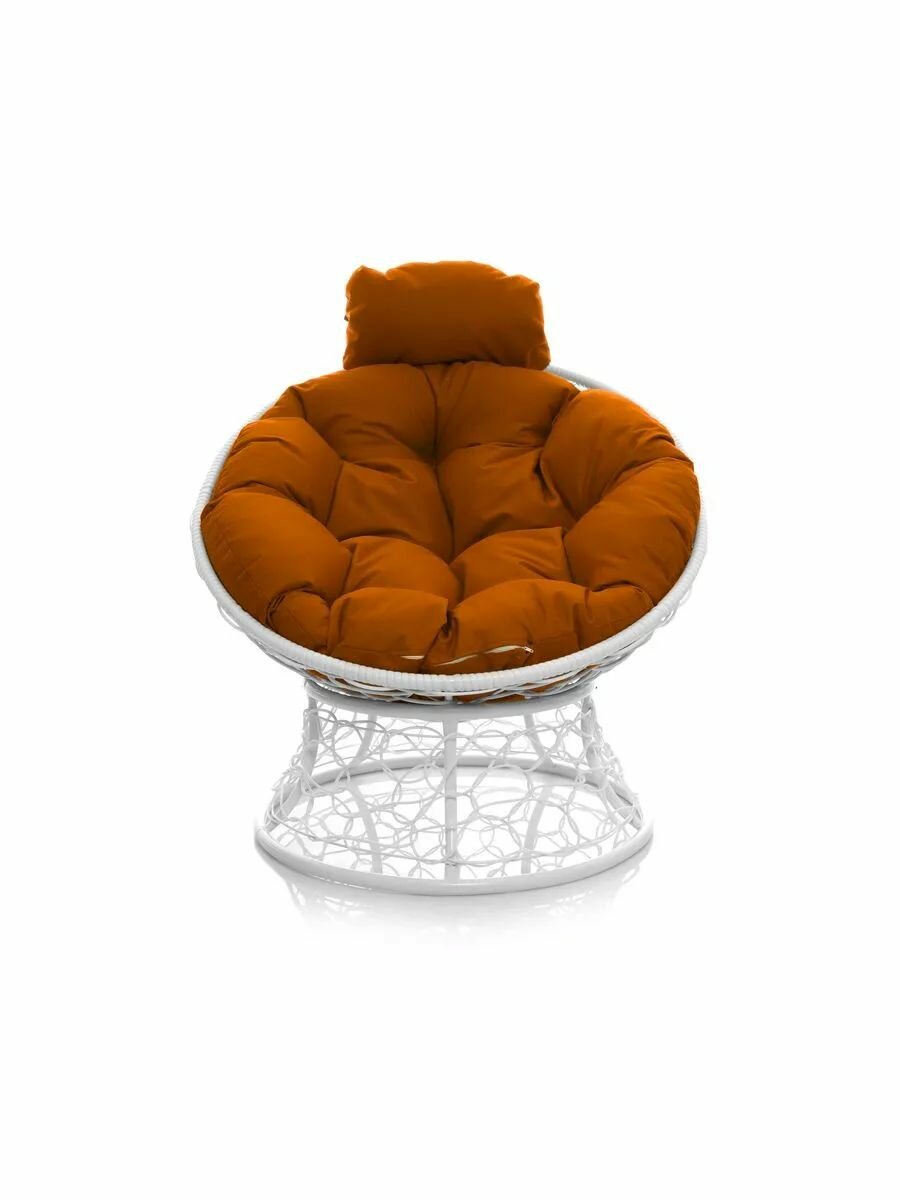 Купить Кресло папасан мини с ротангом белое, оранжевая