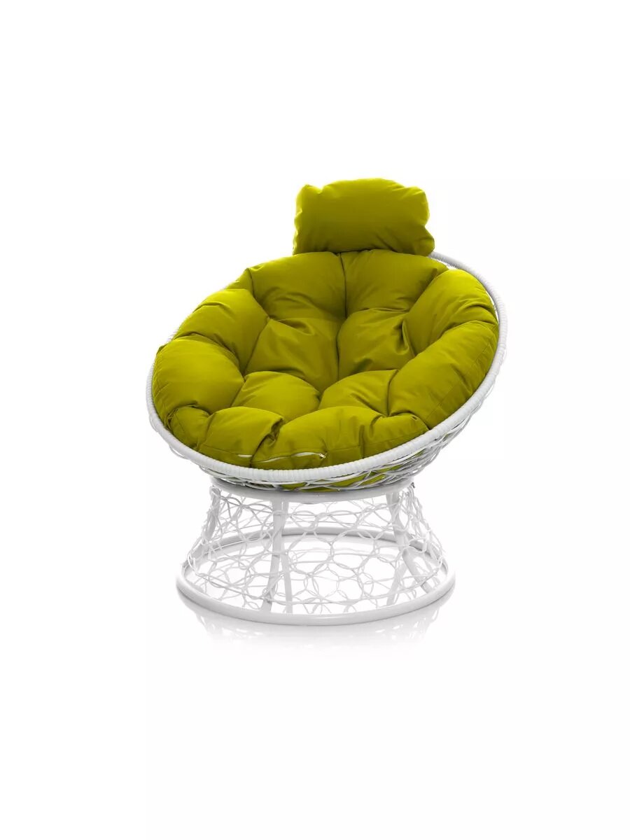 Кресло папасан мини с ротангом белое, зелёная