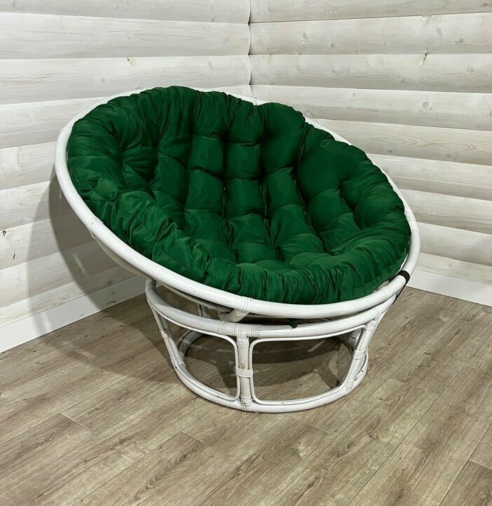 Кресло "Папасан" из натурального ротанга, белый цвет подушка зеленая интересное: