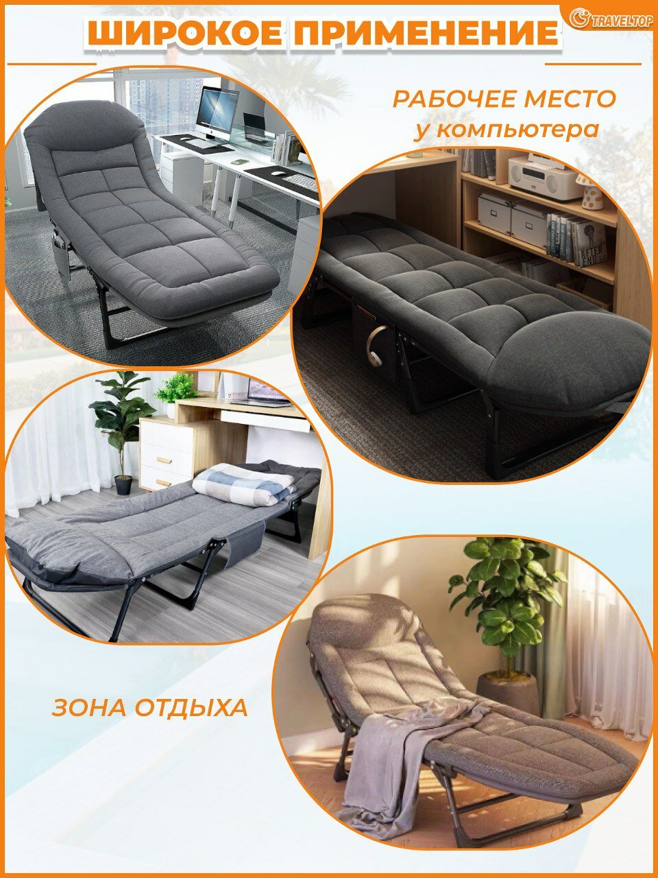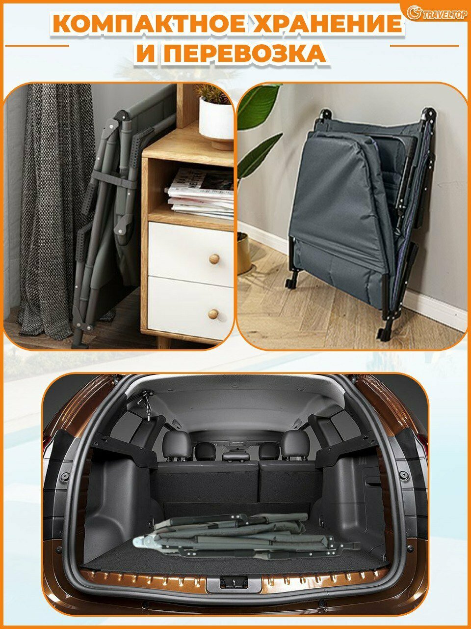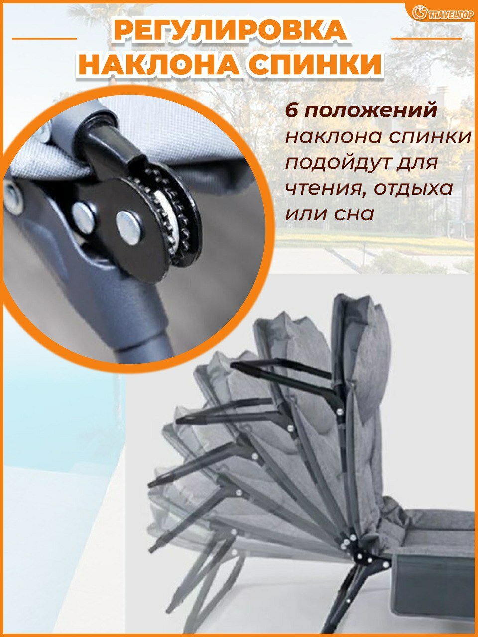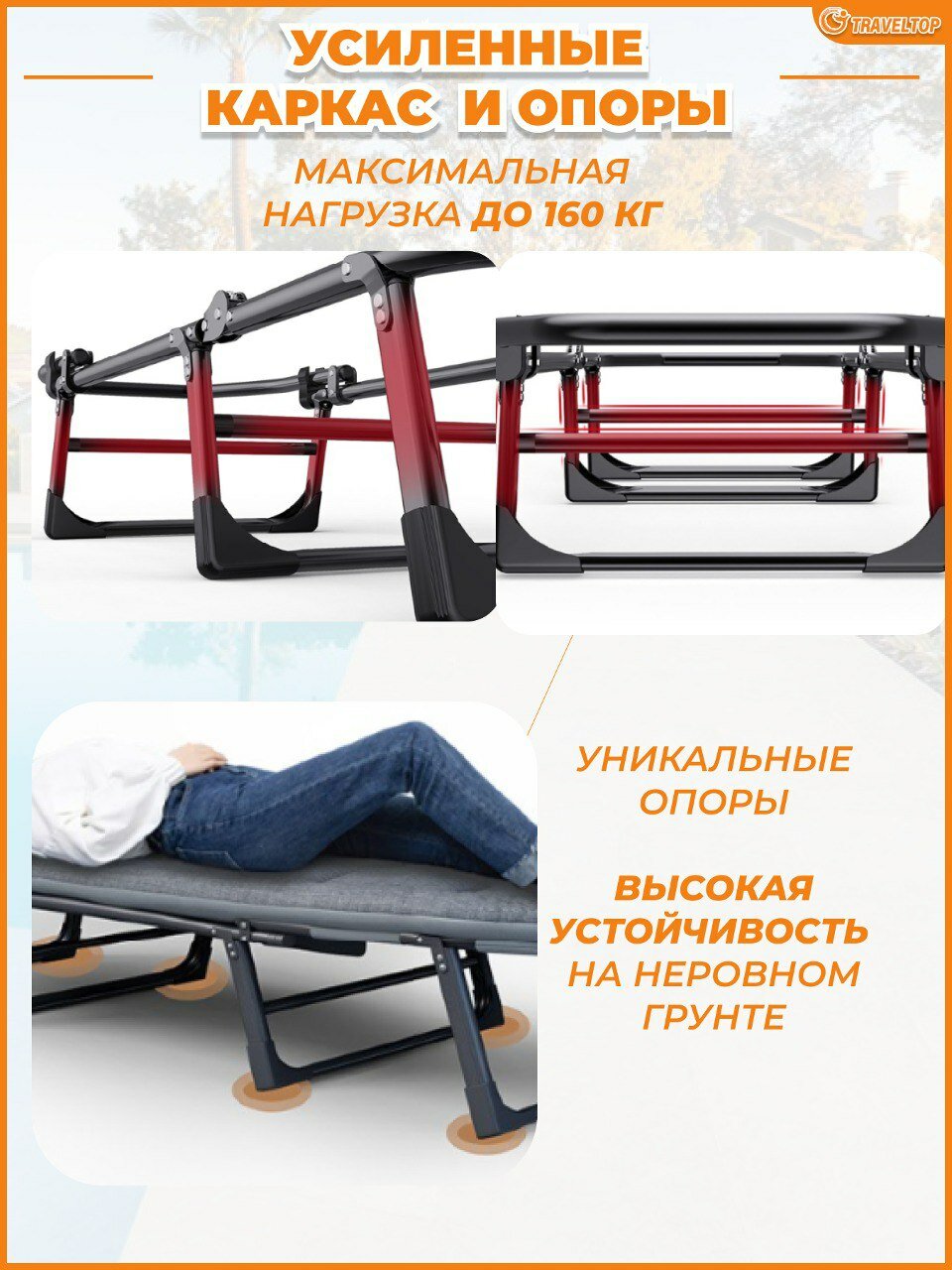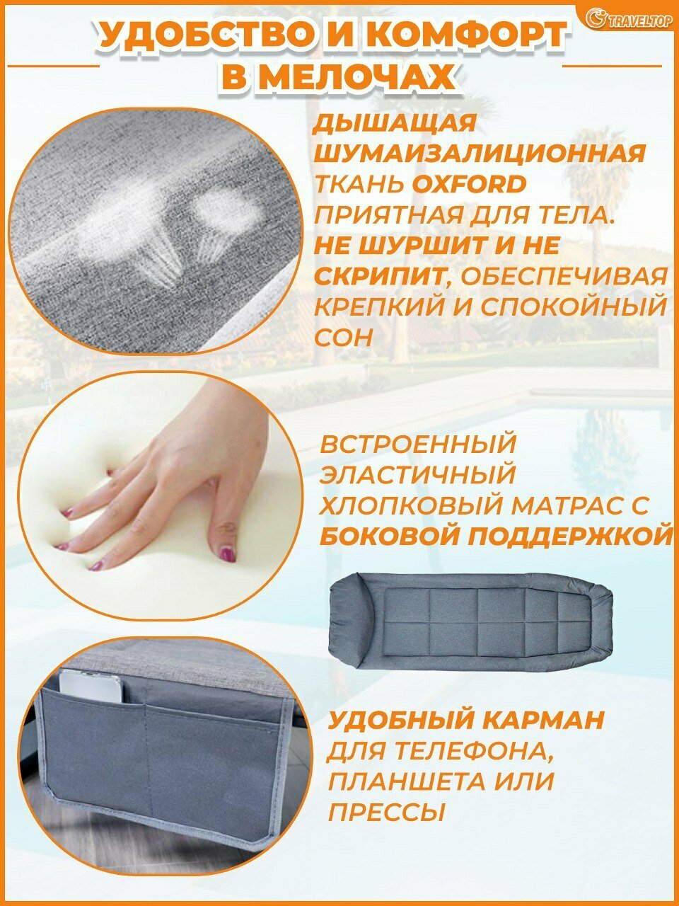 Туристическая раскладушка с регулируемым изголовьем и встроенным матрасом, Traveltop 190х67х28, до160кг интересное: