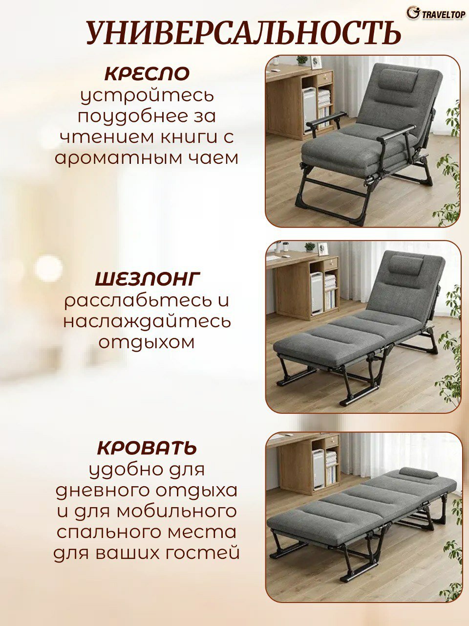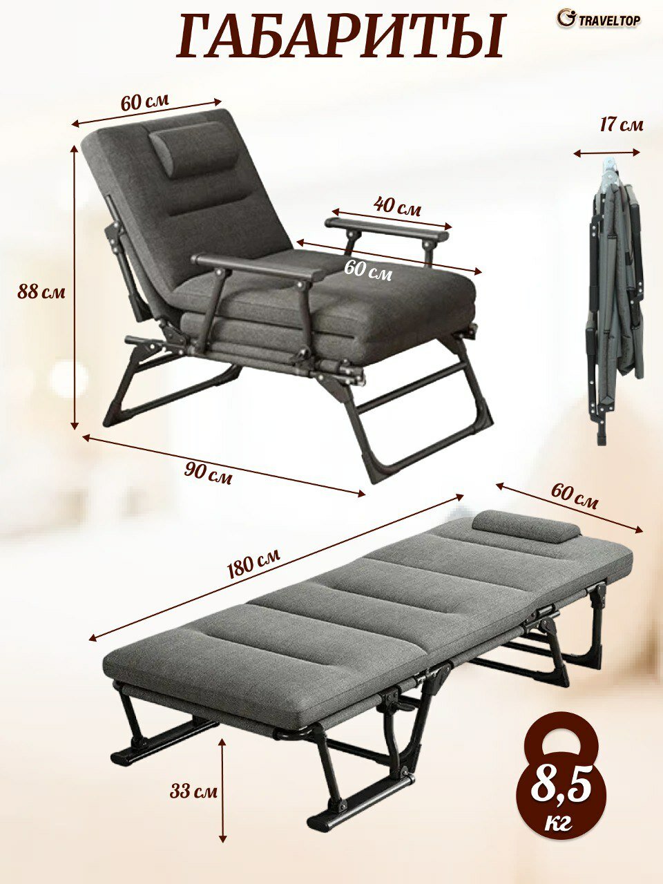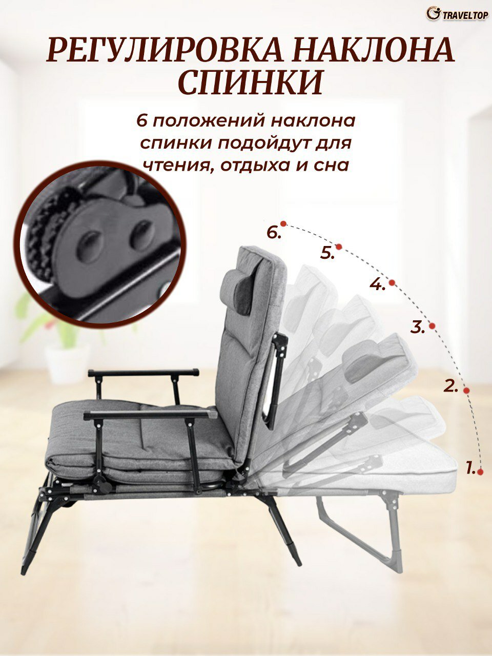 Кресло-раскладушка-шезлонг с матрасом, Traveltop 180х60х33 интересное: