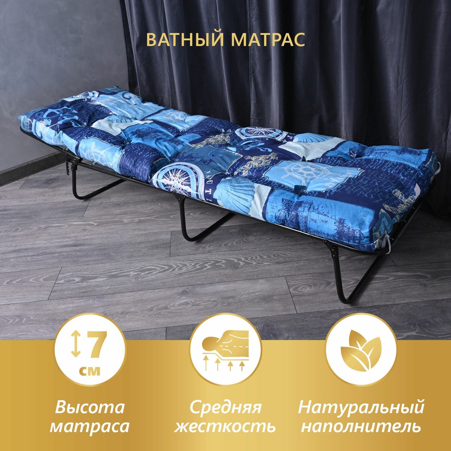 Купить Раскладушка КР-70Е, с ватным матрасом, спальное место 70*190, с регулируемым подголовником