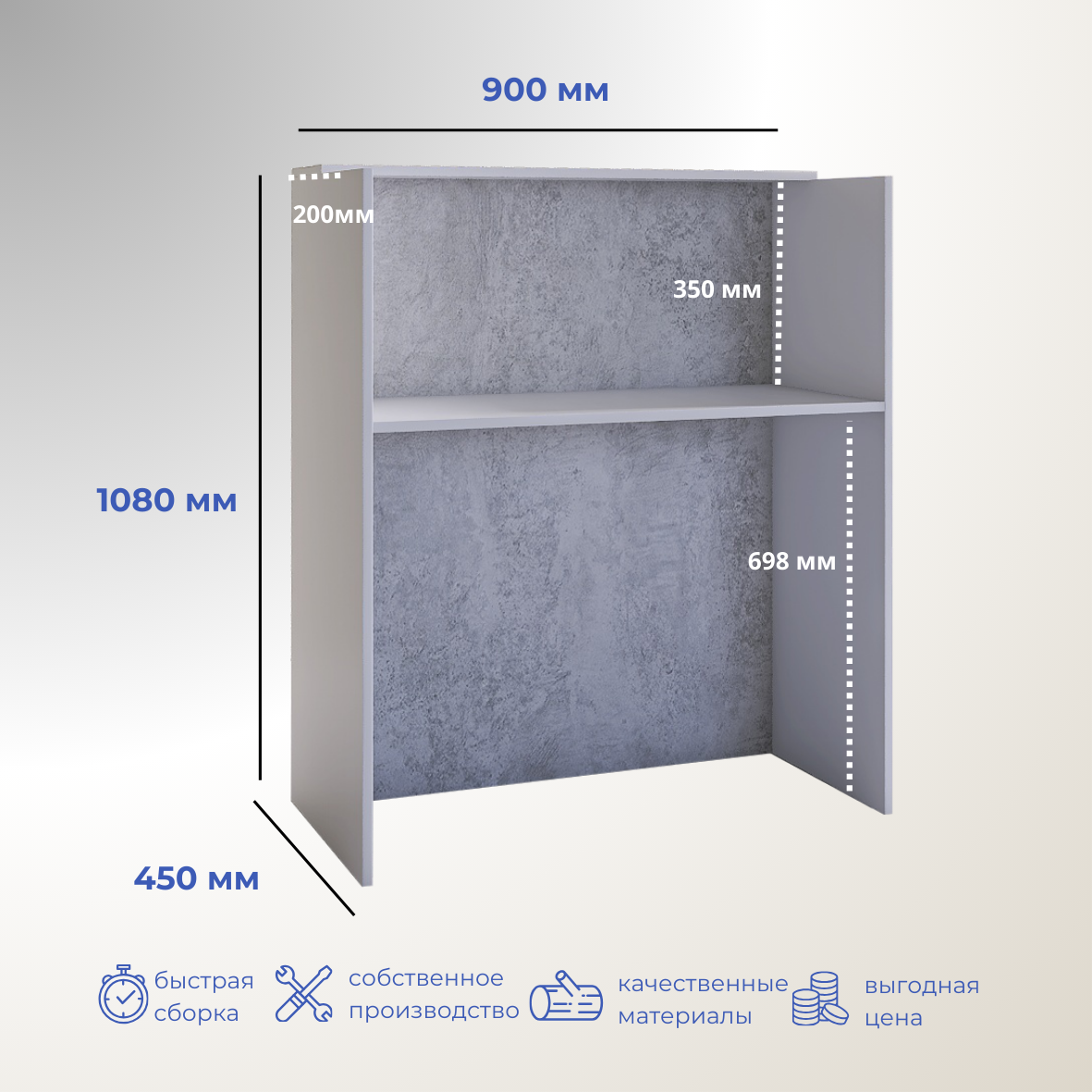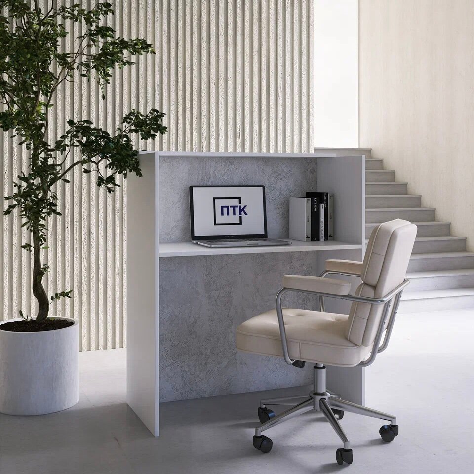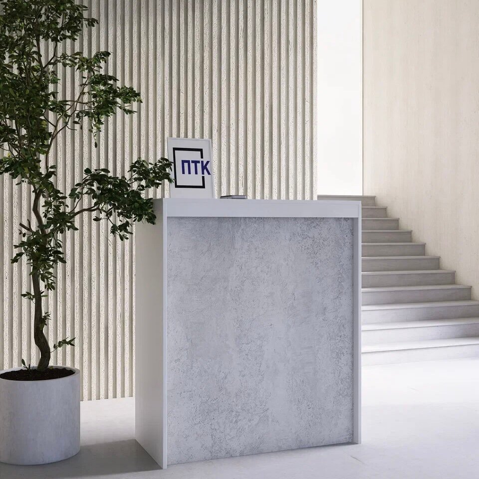 Стойка ресепшен, кассовый стол для администратора "Шоурум", 1080x900x450 мм, белый-бетон