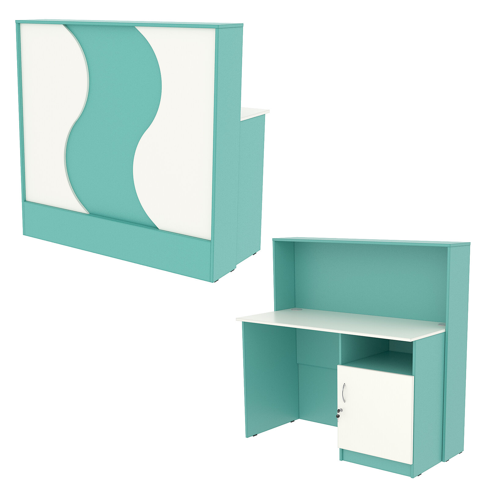 Купить Ресепшн "Нежность Волны" №1В с правосторонней закрытой тумбой, Тиффани Аква и Белый 123.2 x 60 x 120 см