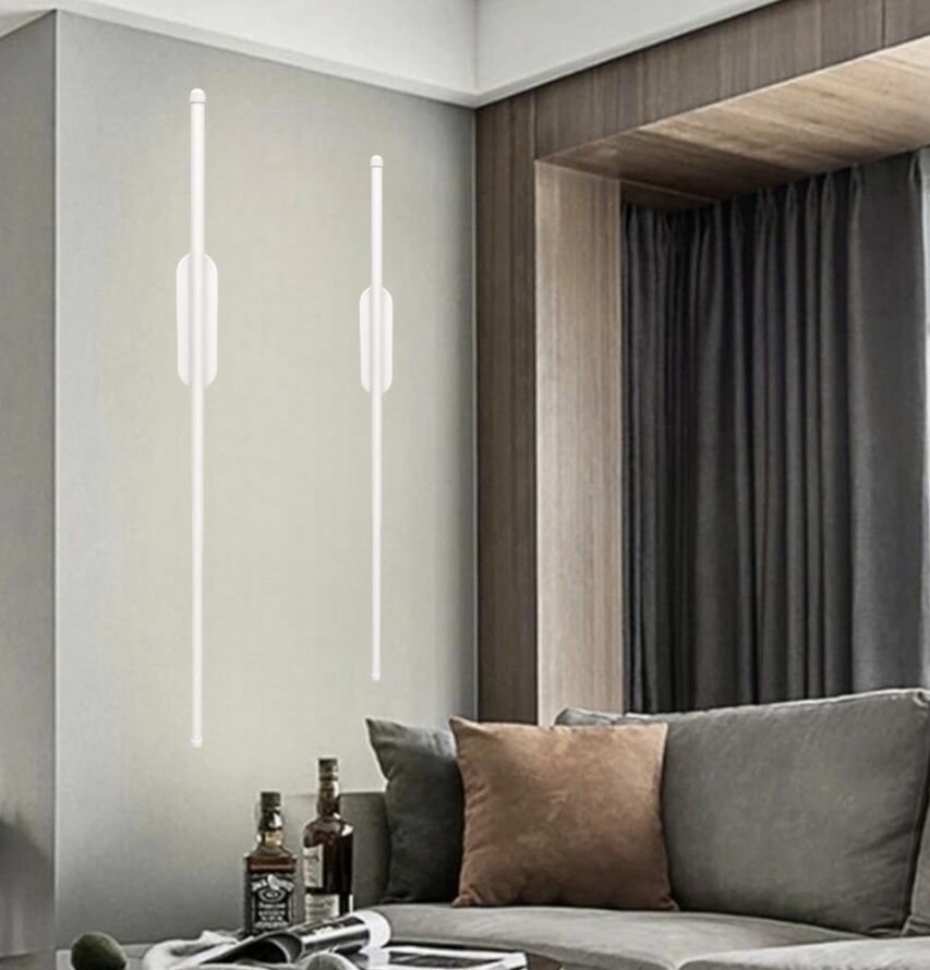 Современная светодиодная настенная лампа с овальным основанием 100 см, Бра металлический для спальни, гостиной, кухни Wogow 017 Белый