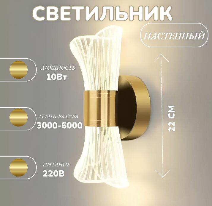 Светильник настенный светодиодный Бра прикроватный Лилия с регулировкой света 10В Золотой интересное: