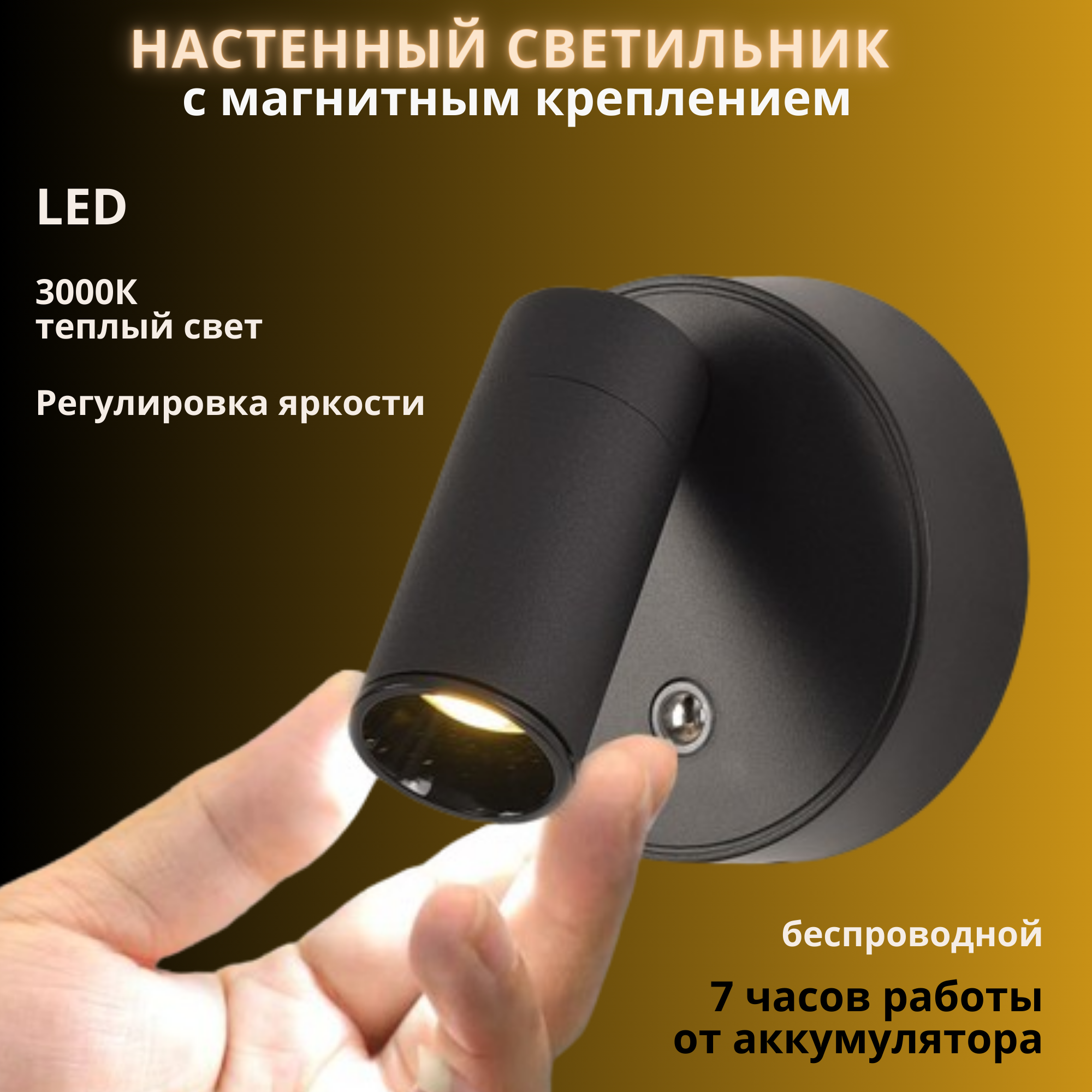 Светильник настенный беспроводной FEDOTOV светодиодный на аккумуляторе магнитный черный интересное: