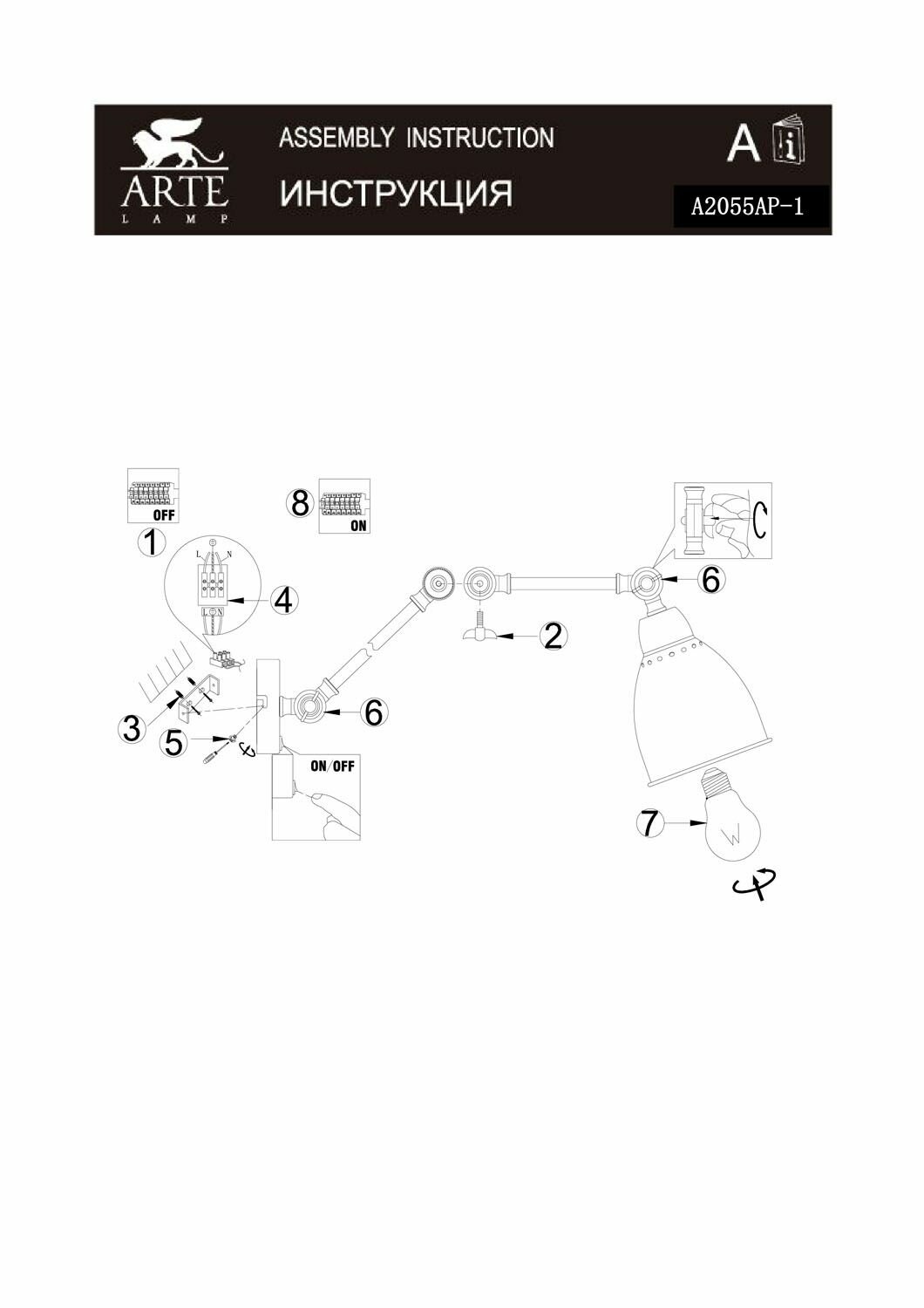 Бра Arte Lamp A2055AP-1BK