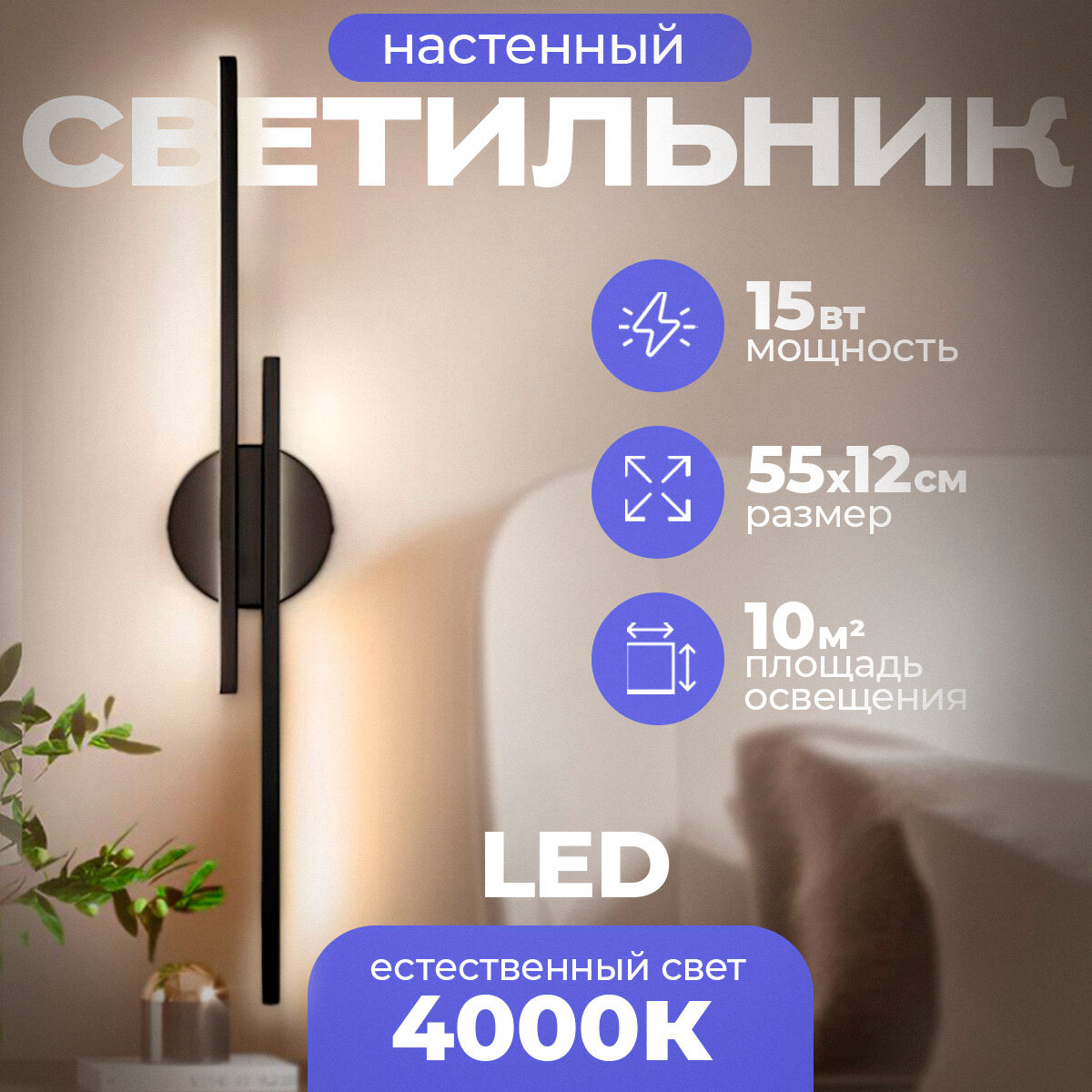 Купить Светильник настенный светодиодный Verde Black 550x120 мм (дневной свет 4000К) 15 Вт